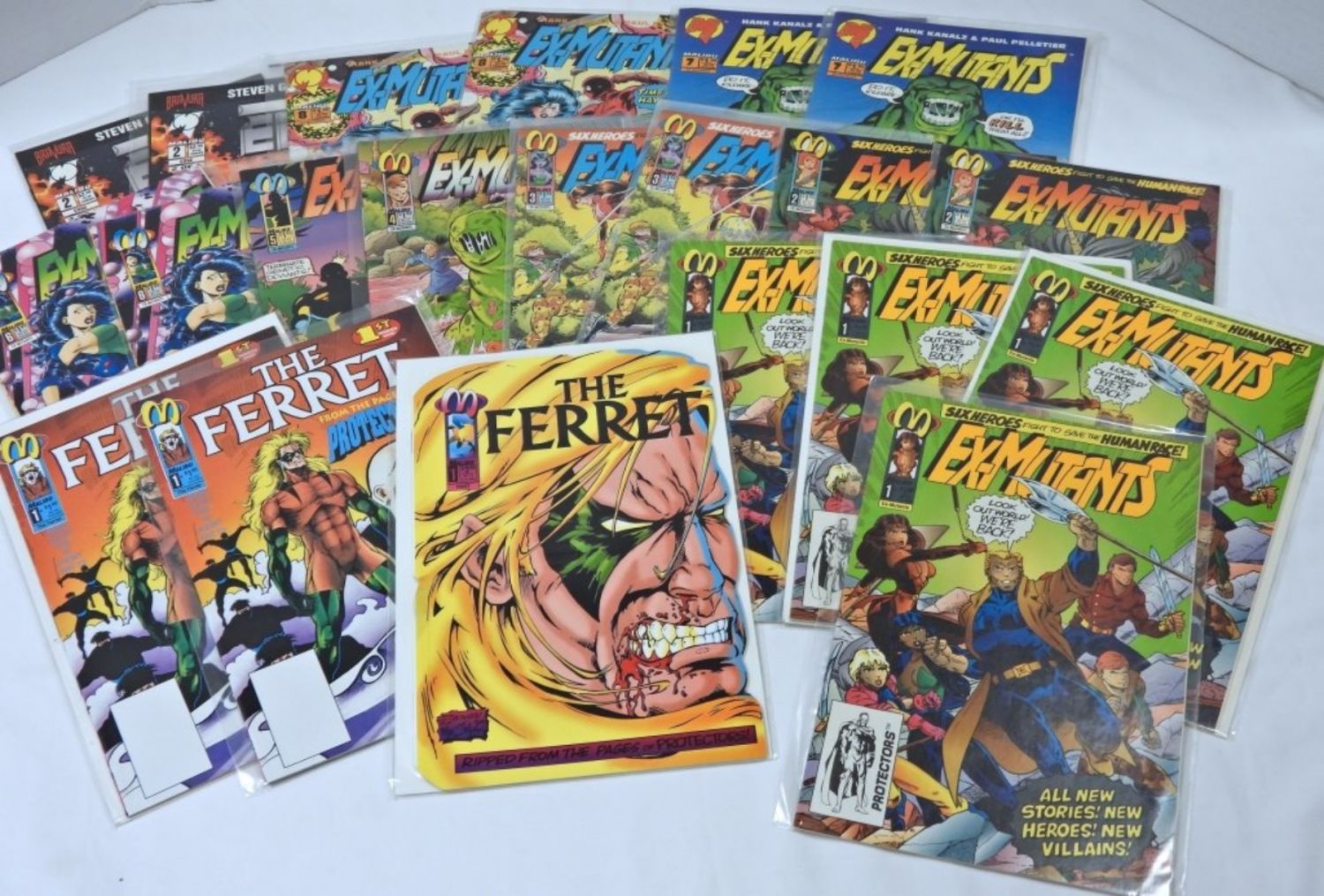 #1 THE FERRET DIE-CUT ISSUE plus (2) #1 THE FERRET; (4) #1 EX-MUTANTS plus DUPLICATE #2 thru #8 & (2) EDGE- SLEEVED LOT