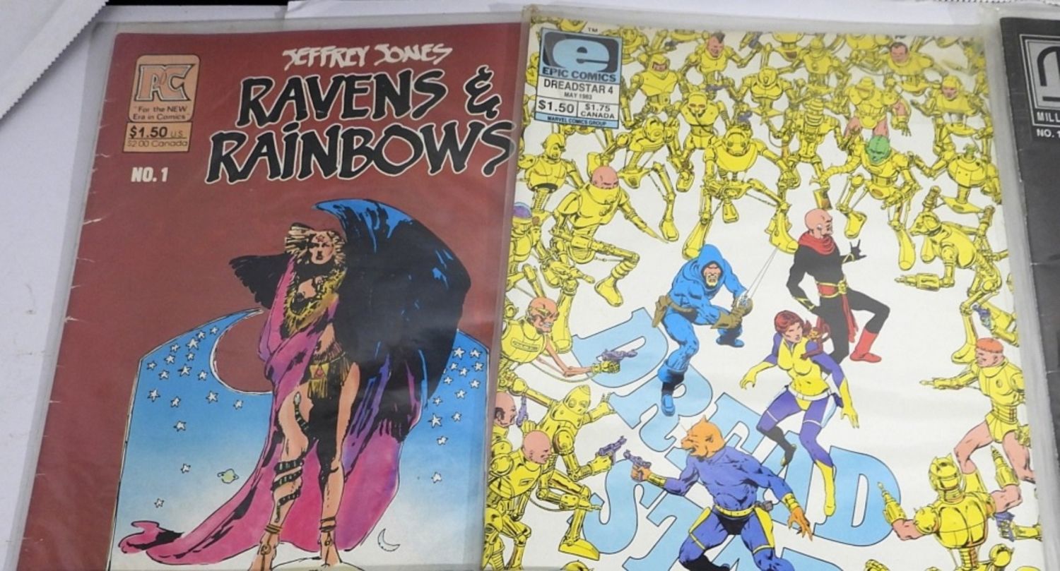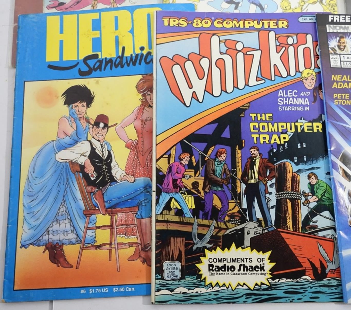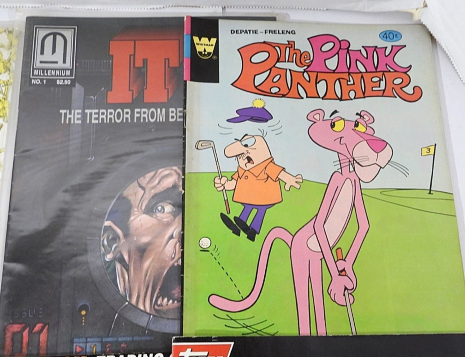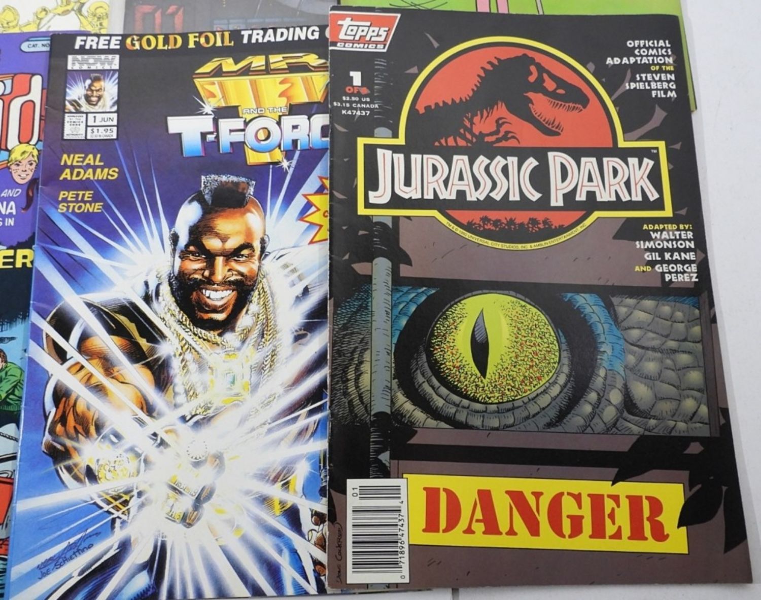1989 Hero Sandwich #6, 1983 Ravens and Rainbows #1, 1983 Dreadstar #4 Marvel Comics Group, 1992 It! The Terror From Beyond Space #1, 1979 The Pink Panther #73 Whitman Comics, 1993 Jurassic Park Topps Comics, 1993 Mr. T and the T-Force #1, 1984 Whiz Kids The Computer Trap; As Is Conditions.
