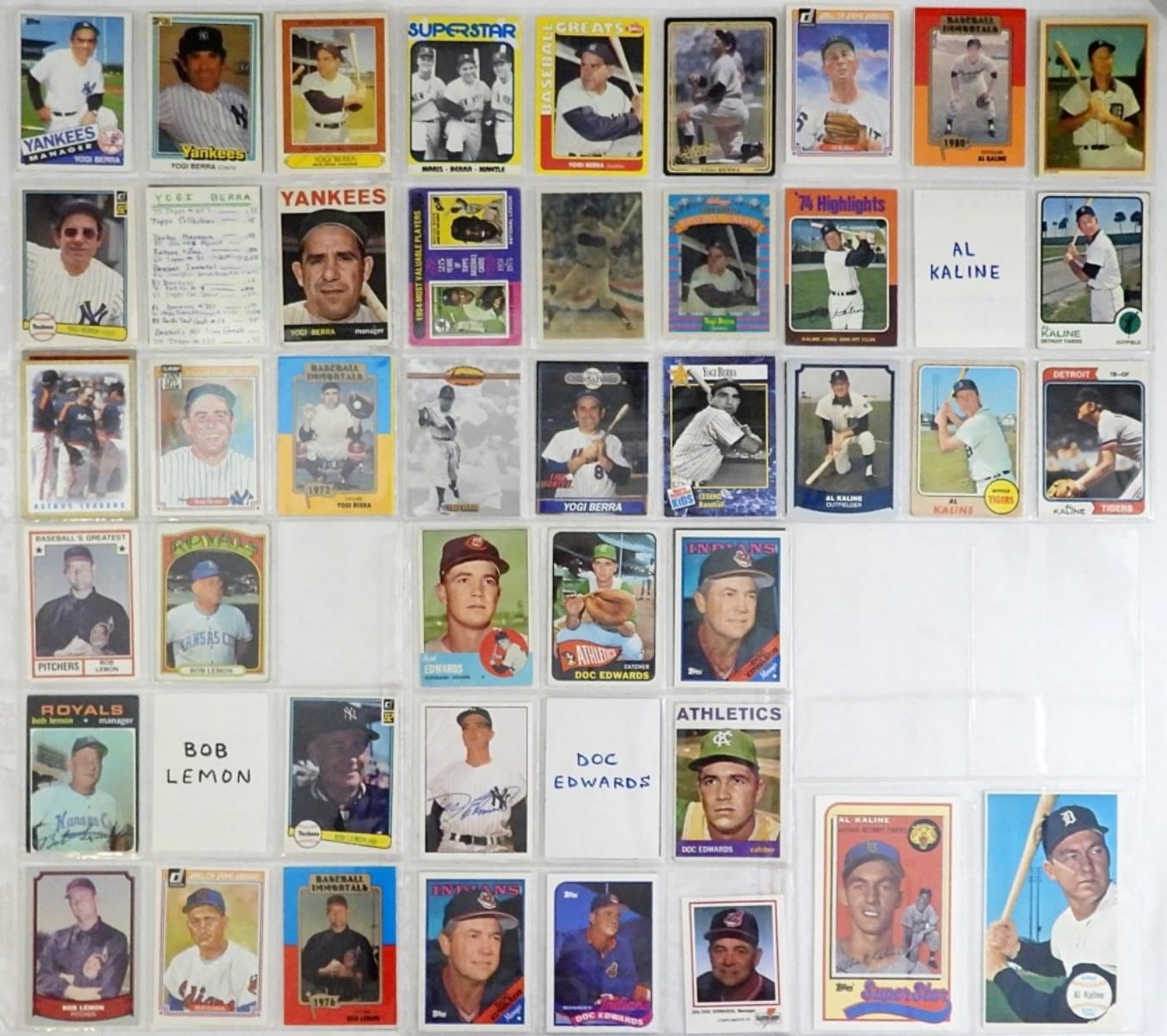 (26) YOGI BERRA, (16) AL KALINE, (7) BOB LEMON, (10) DOC EDWARDS – ALL DIFFERENT COLLECTION – OVERALL NICE EX or BETTER