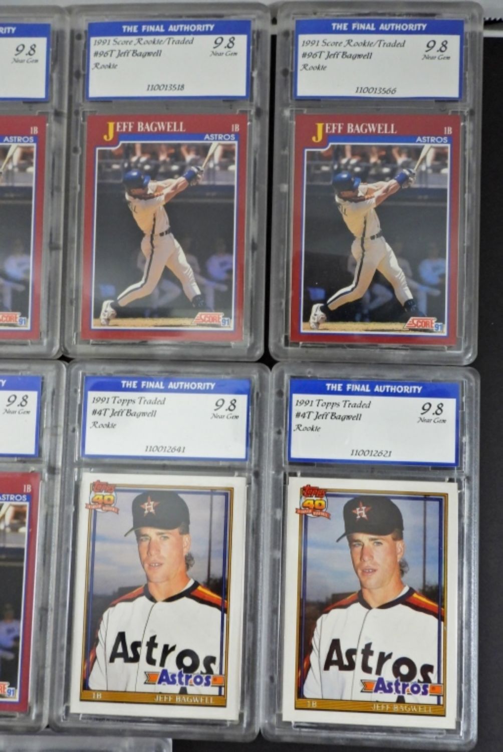 (8) 1991 Score Rookie & Traded – #96T Jeff Bagwell (RC) & (4) 1991 Topps Traded #4T Jeff Bagwell (RC) – all graded by THE FINAL AUTHORITY 9.9