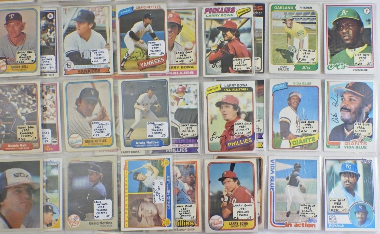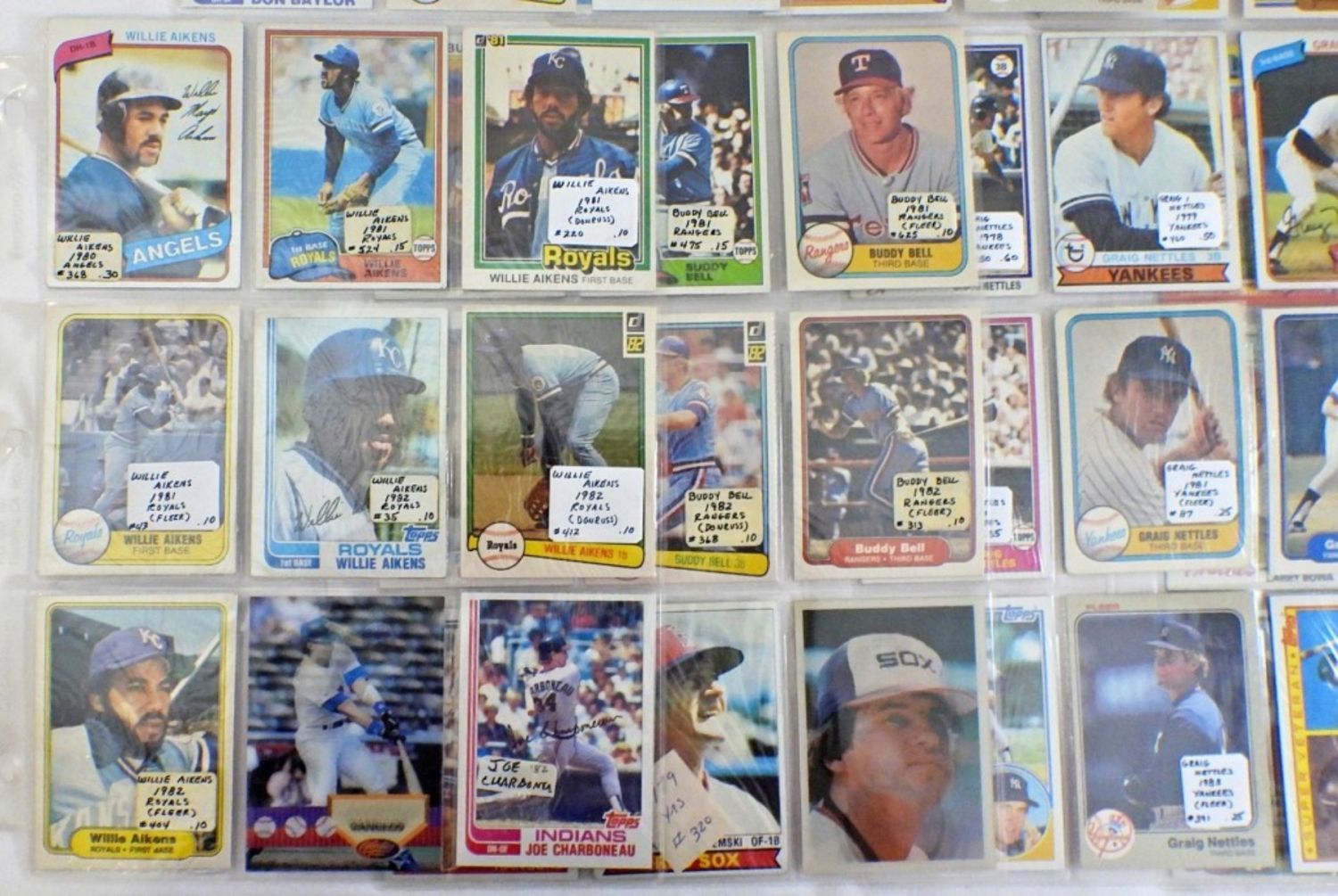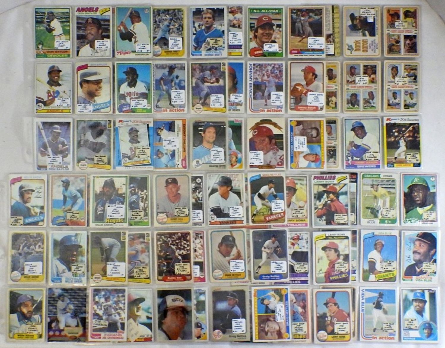 (9) cards each Player Listed – HANK AARON, JOHNNY BENCH, GEORGE BRETT, DON BAYLOR, VIDA BLUE, LARRY BOWA, GRAIG NETTLES, (7) BUDDY BELL, (7) WILLIE AIKENS & (4) OTHER