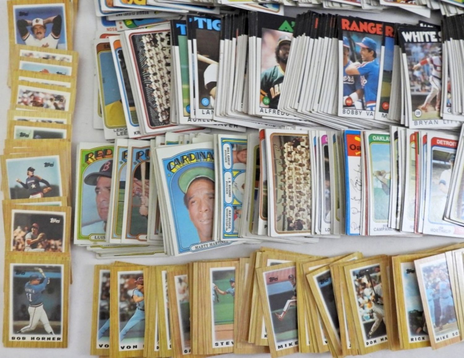 CARDS & (100) 1986 TOPPS, (210) 1980 TOPPS, (3) 1987 TOPPS MINI SETS w/EXTRA CARDS – UNSEARCHED LOT – VARIOUS CONDITIONS