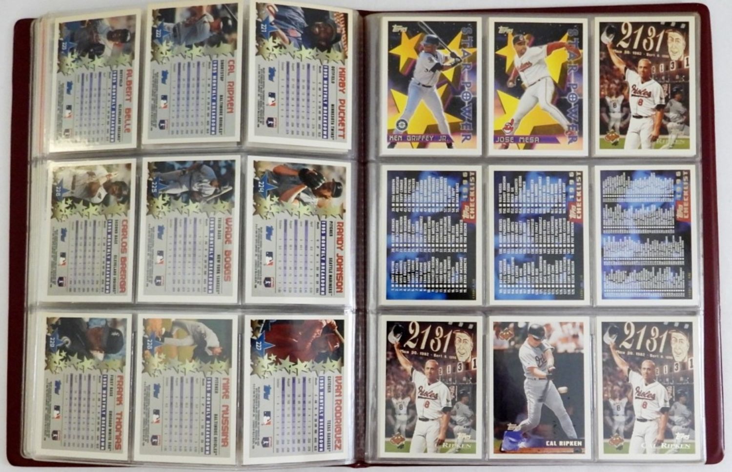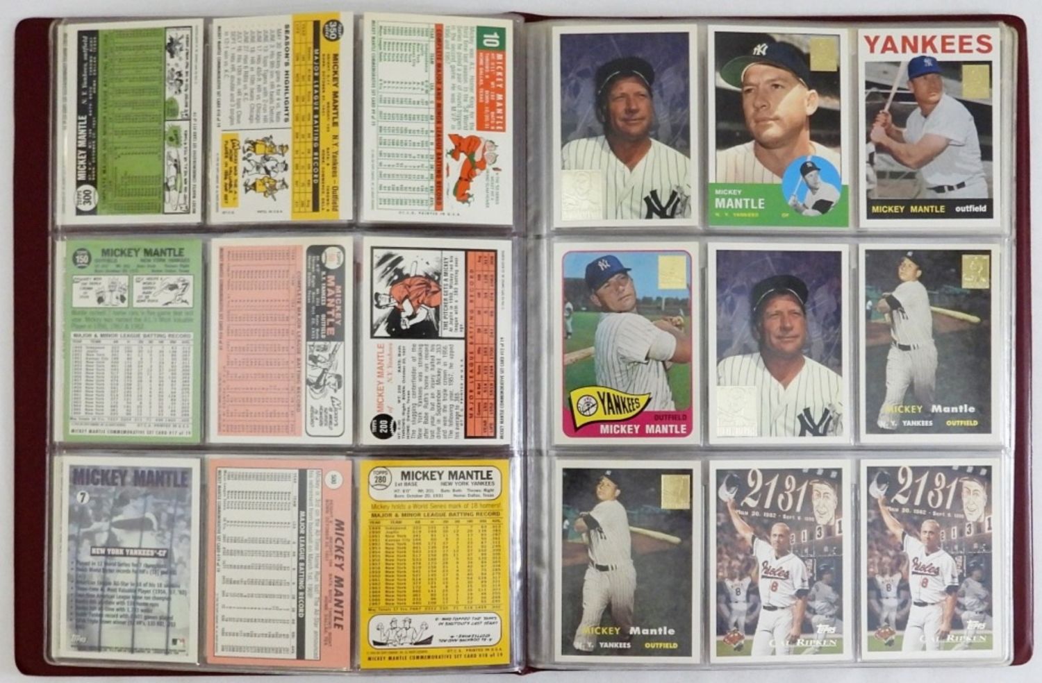1951 BOWMAN thru 1969 TOPPS with SOME DUPLICATES plus CAL RIPKEN COMMEMORATIVE CARDS & TOPPS STAR POWER CARDS (58 TOTAL) plus (25) MANTLE – ALL IN COLLECTORS ALBUM