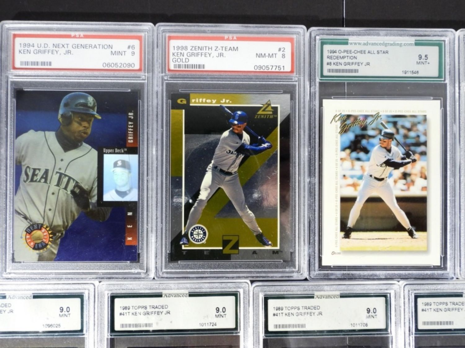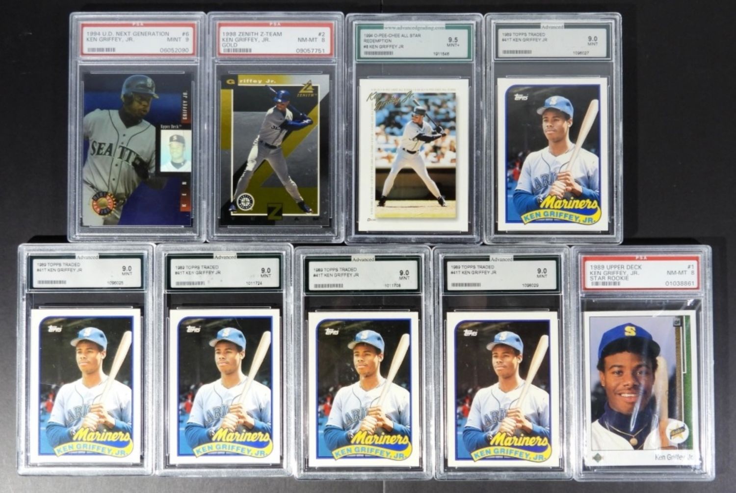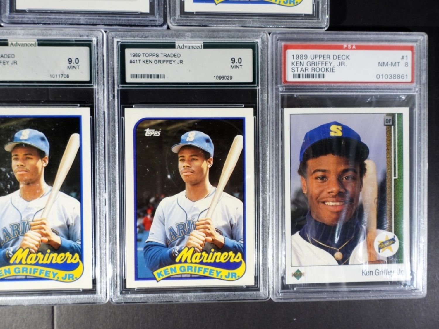 PLUS (3) PREMIUM KEN GRIFFEY JR CARDS – ALL GRADED LOT NM-MT 8 or BETTER!