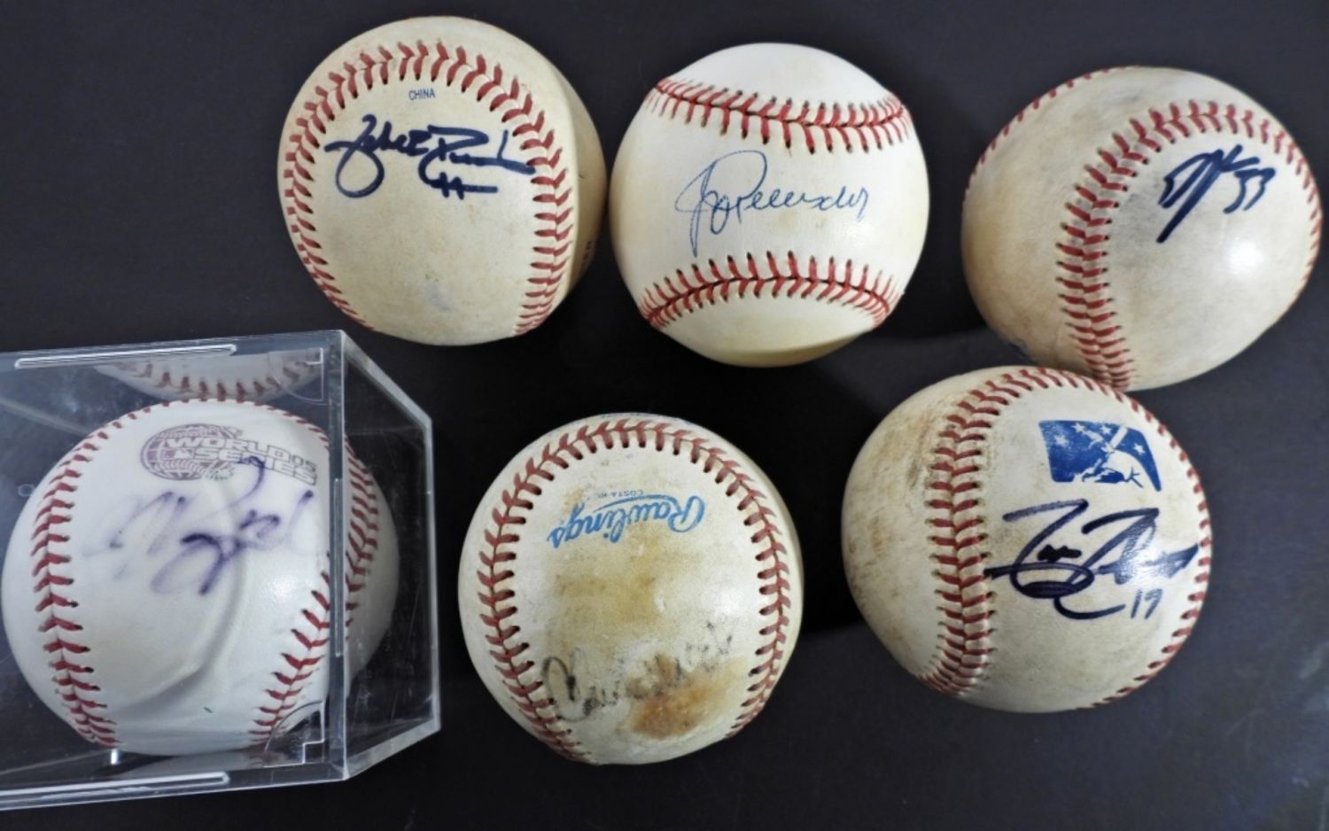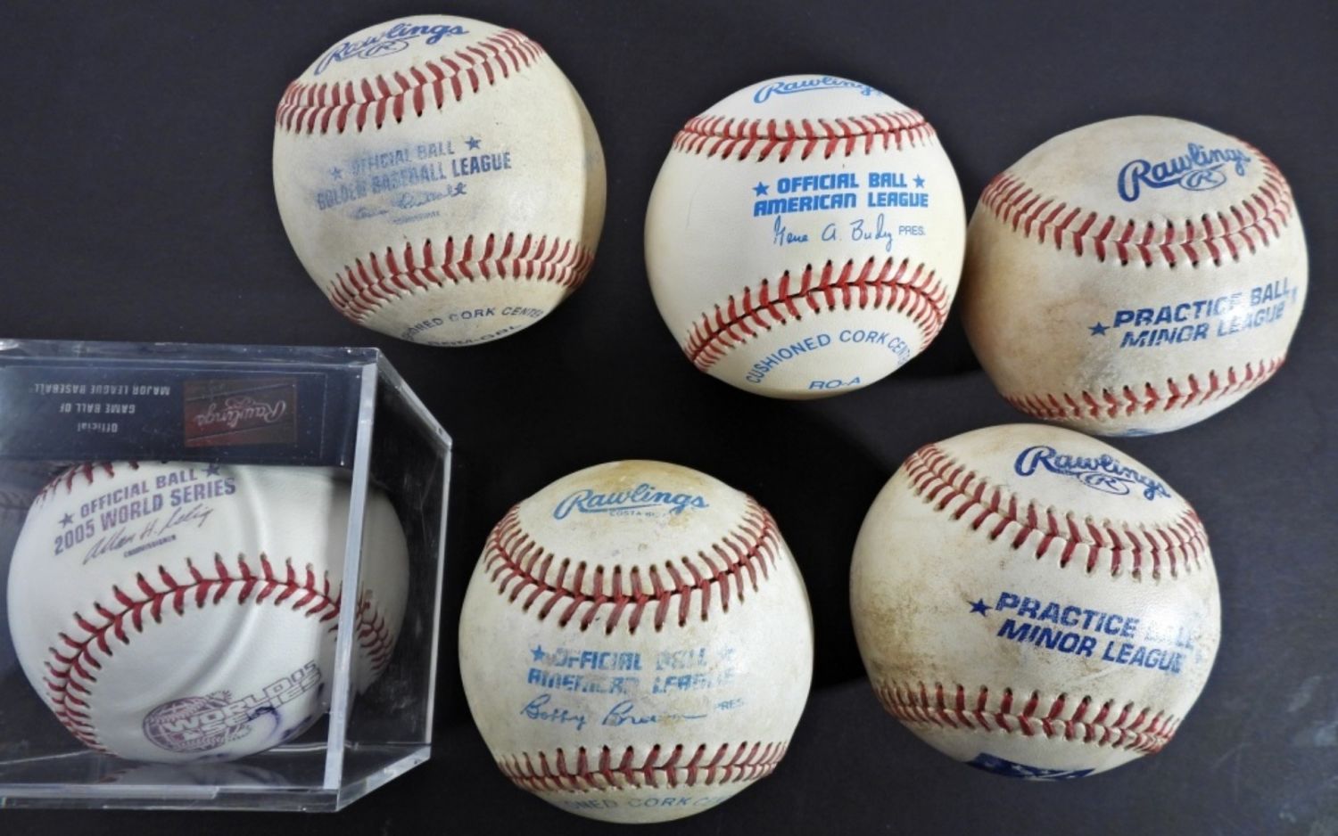 (2) PRACTICE BALL MINOR LEAGUE, (1) GOLDEN BASEBALL LEAGUE, (1) ’05 WORLD SERIES, (2) AMERICAN LEAGUE – NO COA’s