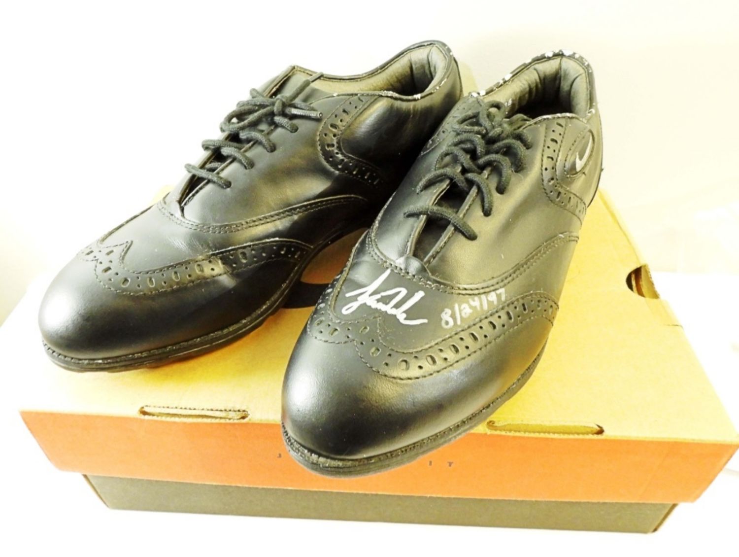 INCLUDES CARD STATING “CUSTOMER INVENTORY GOLF SHOE is SIGNED by TIEGER WOODS. TIGER’S SIGNATURE WAS WITNESSED by an UPPER DECK AUTHENTICATED REPRESENTATIVE” in ORIGINAL SHOE BOX / PAIR – NOT an Upper Deck COA