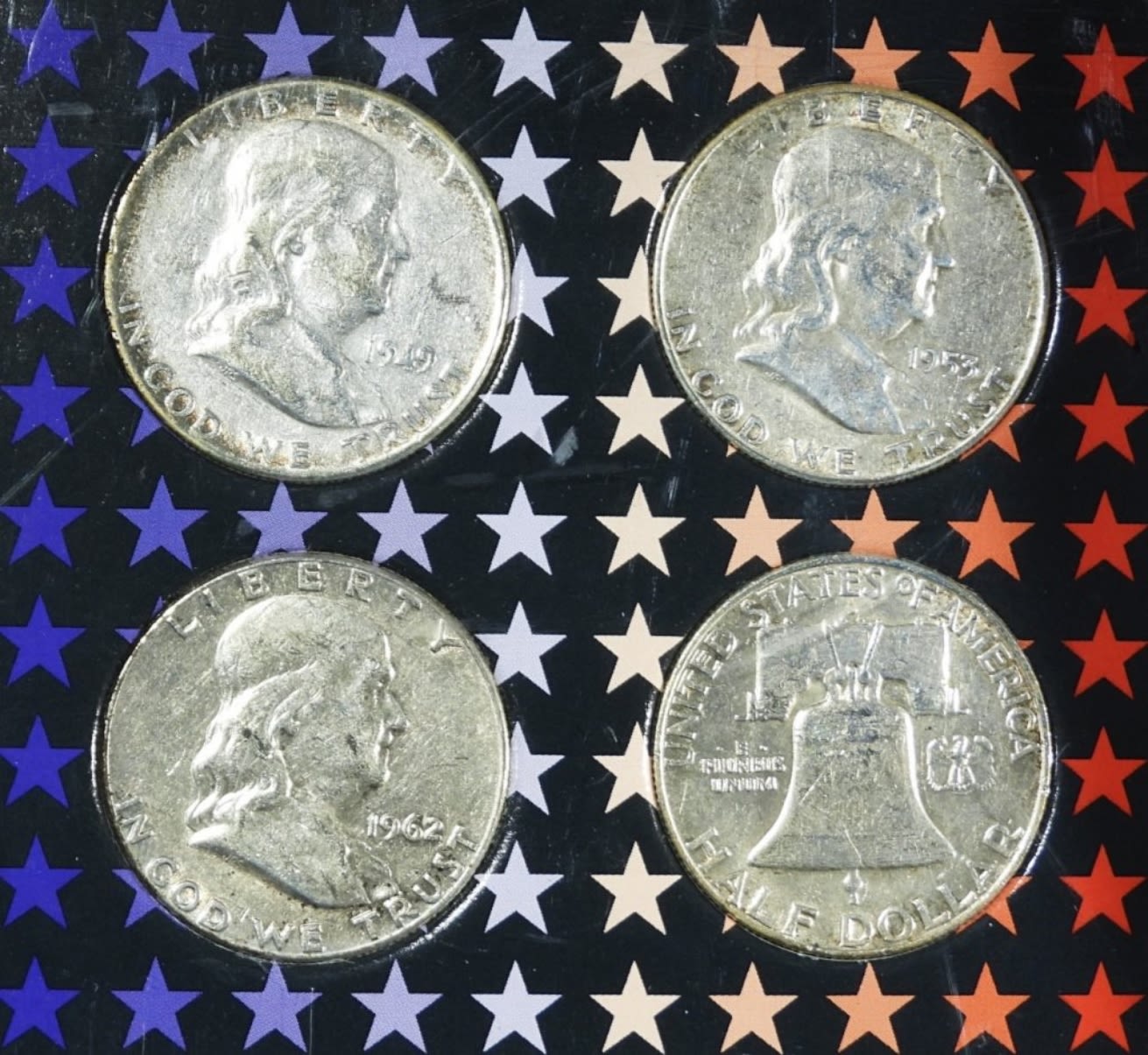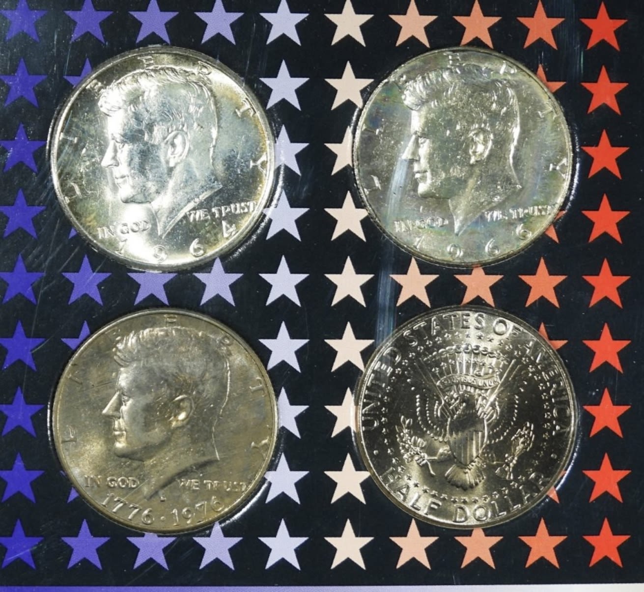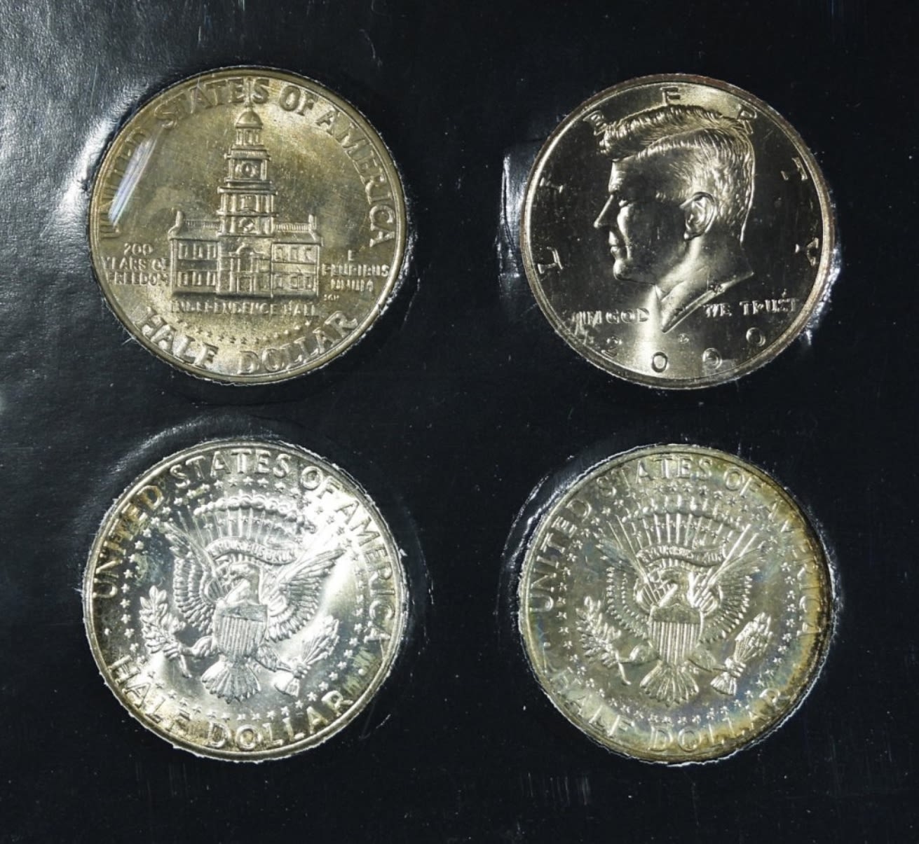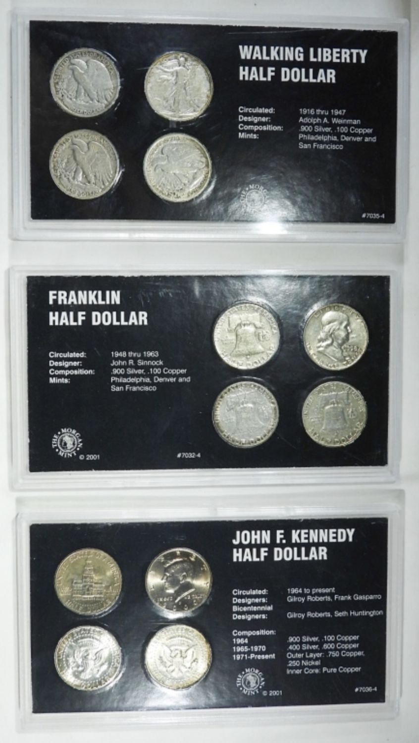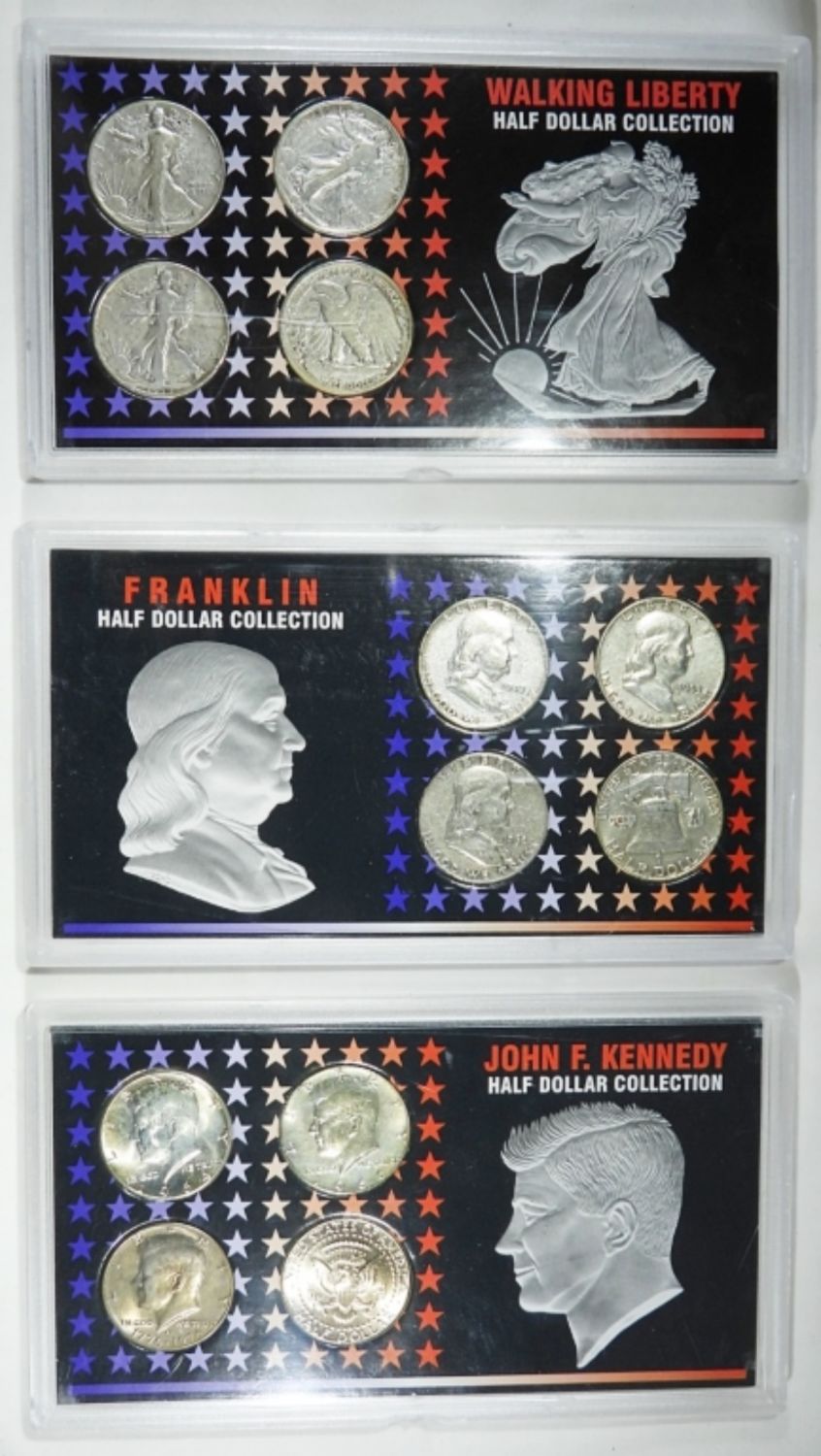 WALKING LIBERTY 4 COIN SET; FRANKLIN MINT 4 COIN SET; KENNEDY 4 COIN SET – (12 TOTAL)