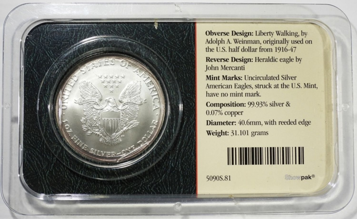 AMERICAN SILVER EAGLE 1ozt .999 PURE SILVER