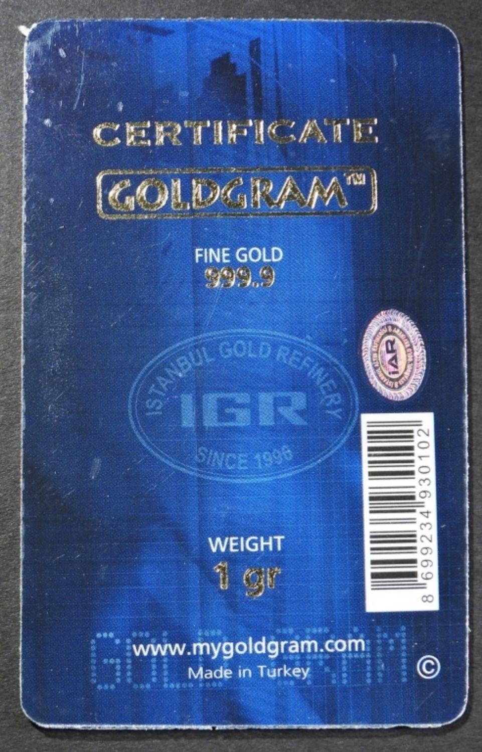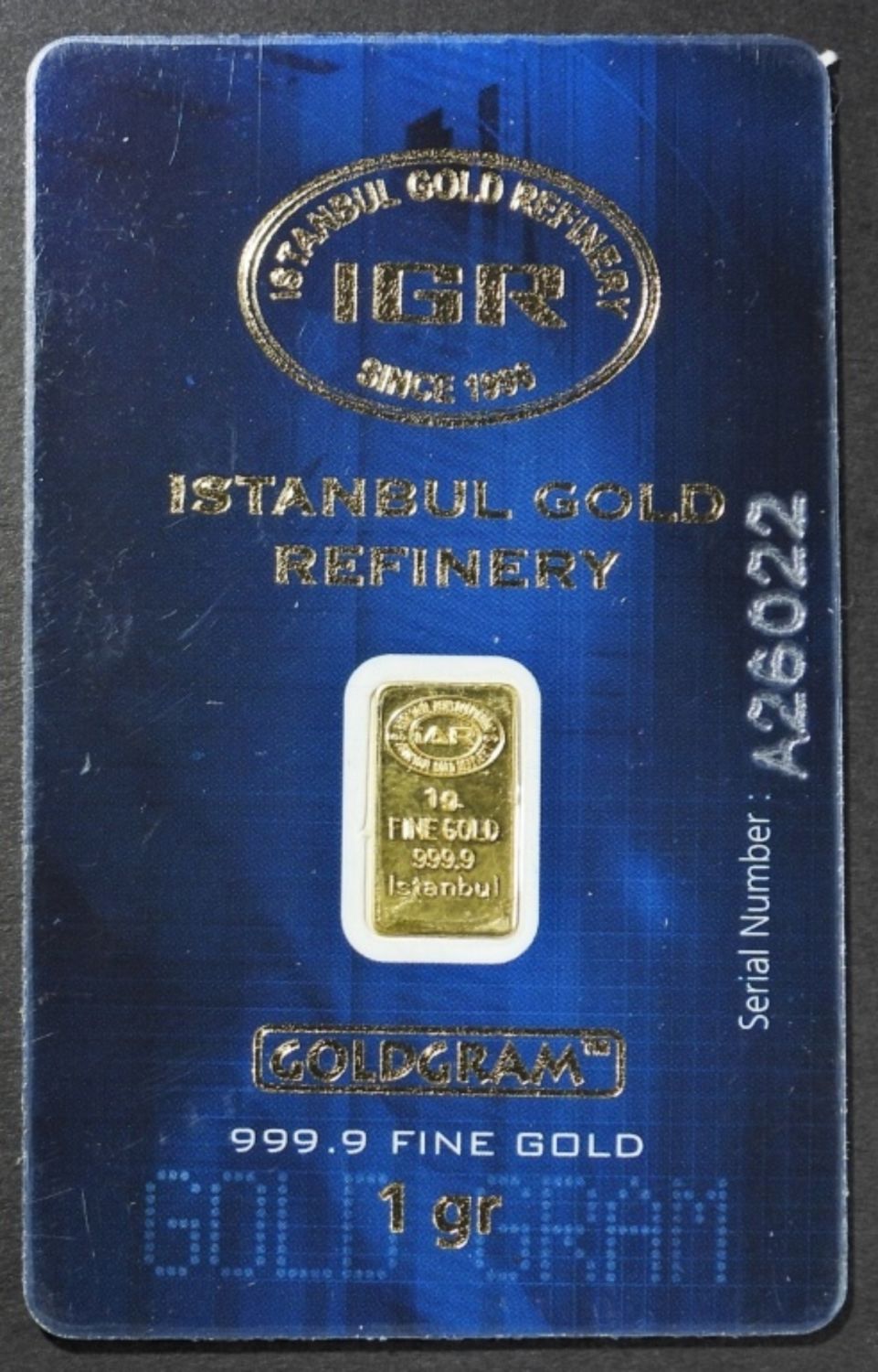 ISTANBUL GOLD REFINERY. SEALED IN REFINERY CARD