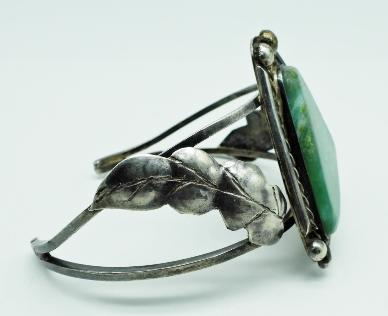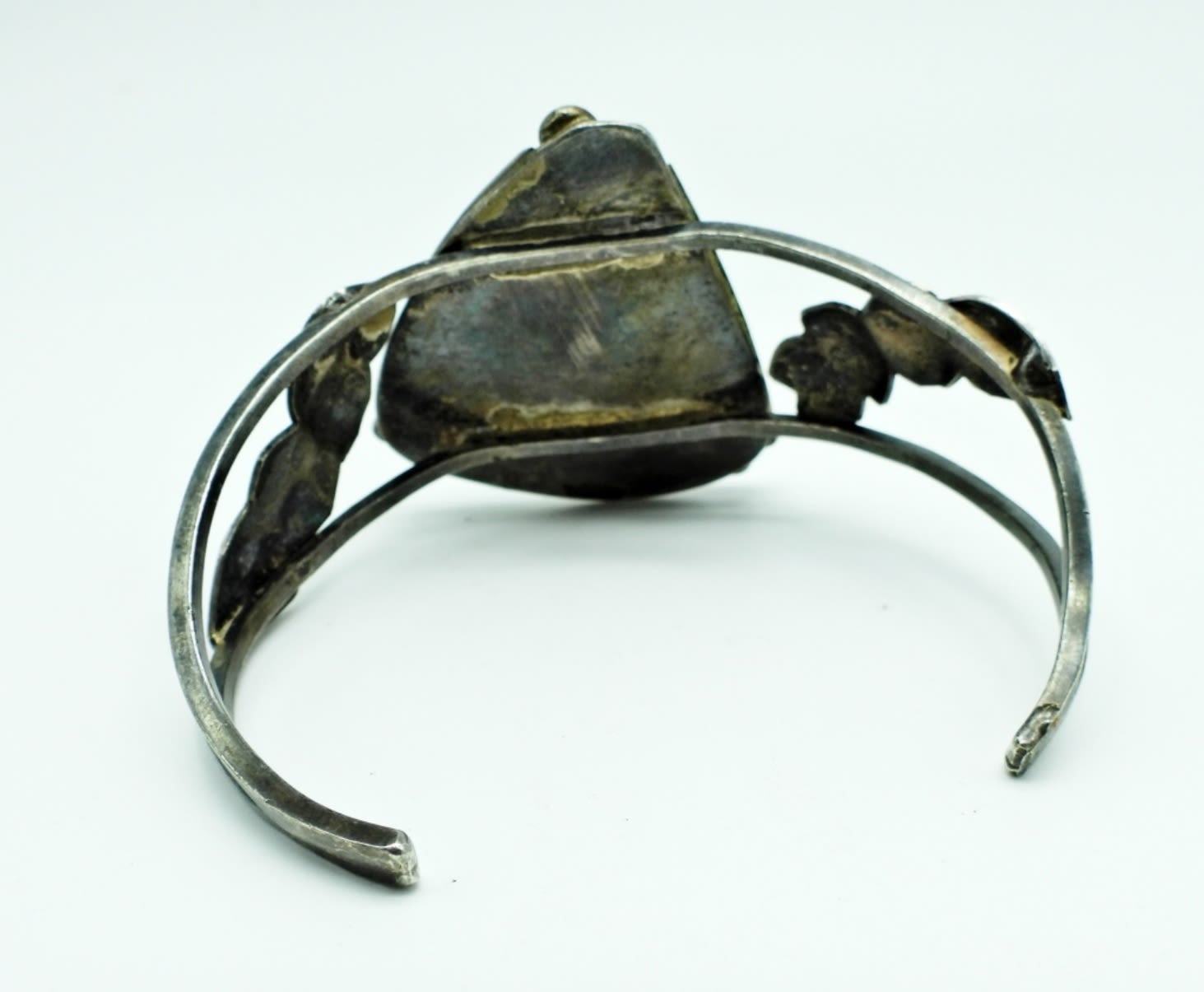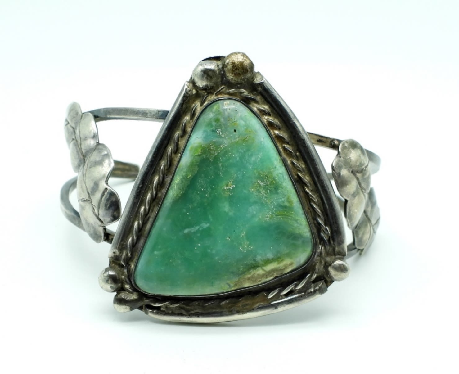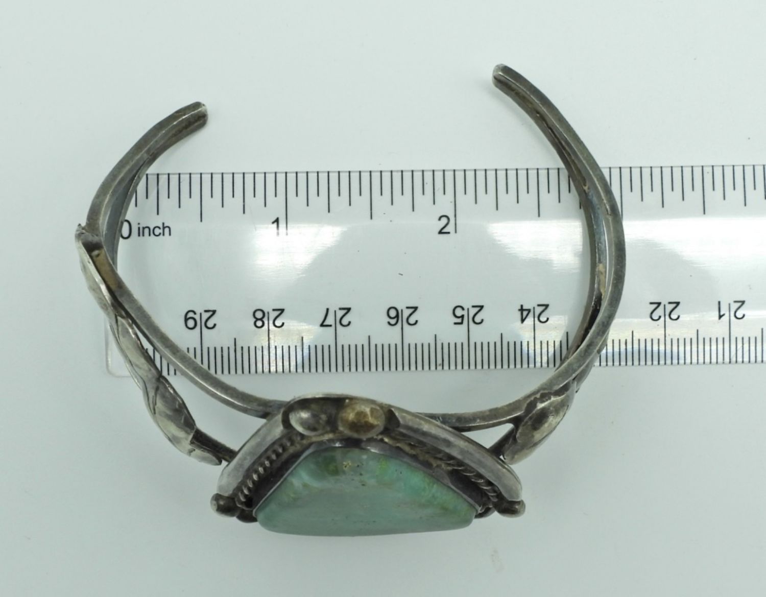 33.3DWT, 3″ WIDE LEAF DESIGN ON THE SIDE WITH TURQUOISE STONE IN THE MIDDLE