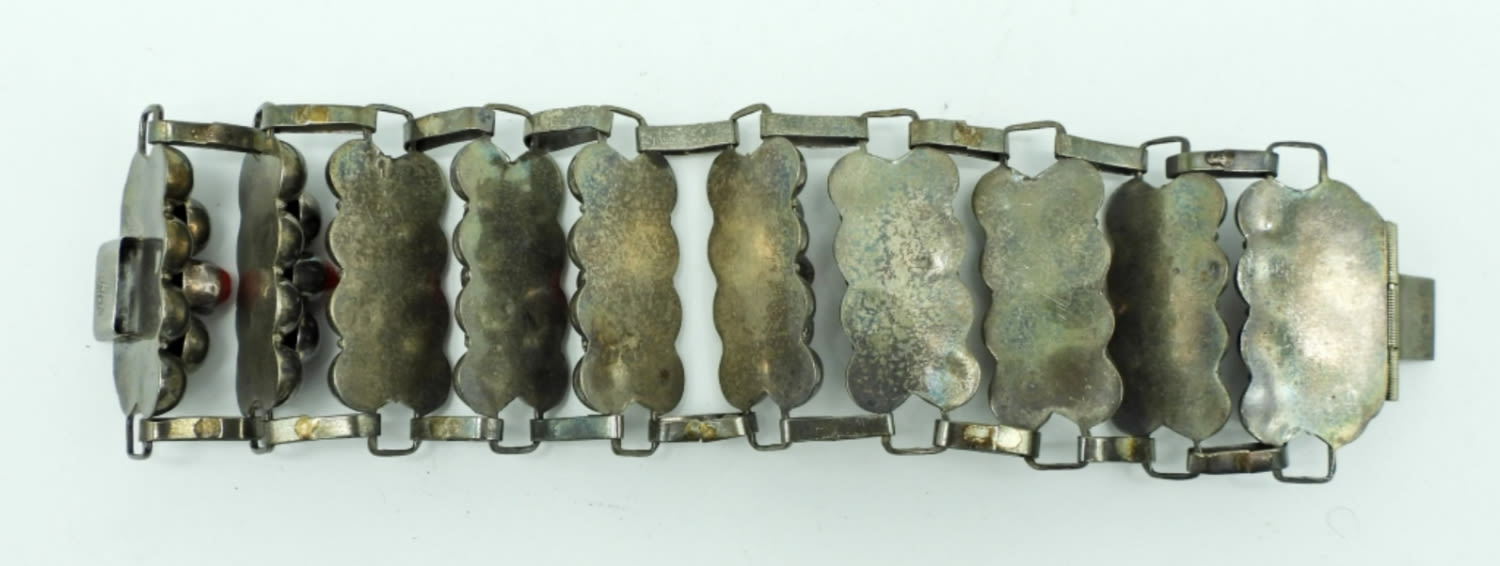 27.5DWT, 7 1/2″ LONG, BOXED CLASP, CORAL ROUND BEADS ARE IN THE MIDDLE, STAMPED MEXICO 925 ON THE BACK
