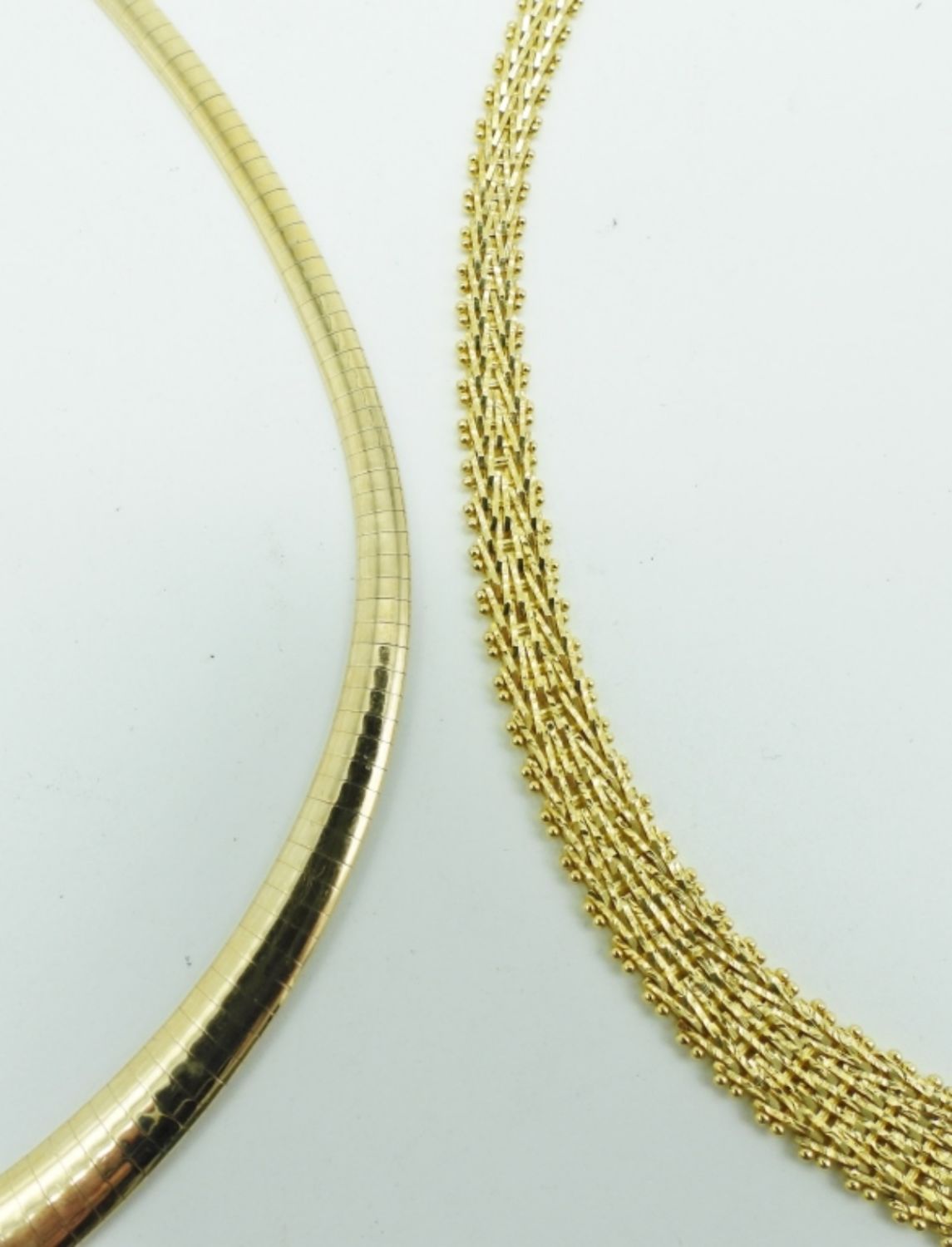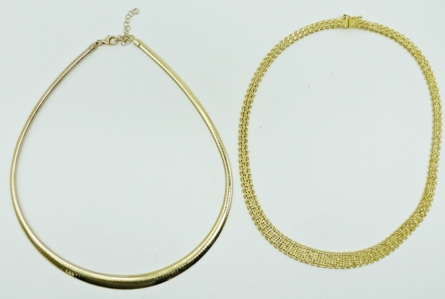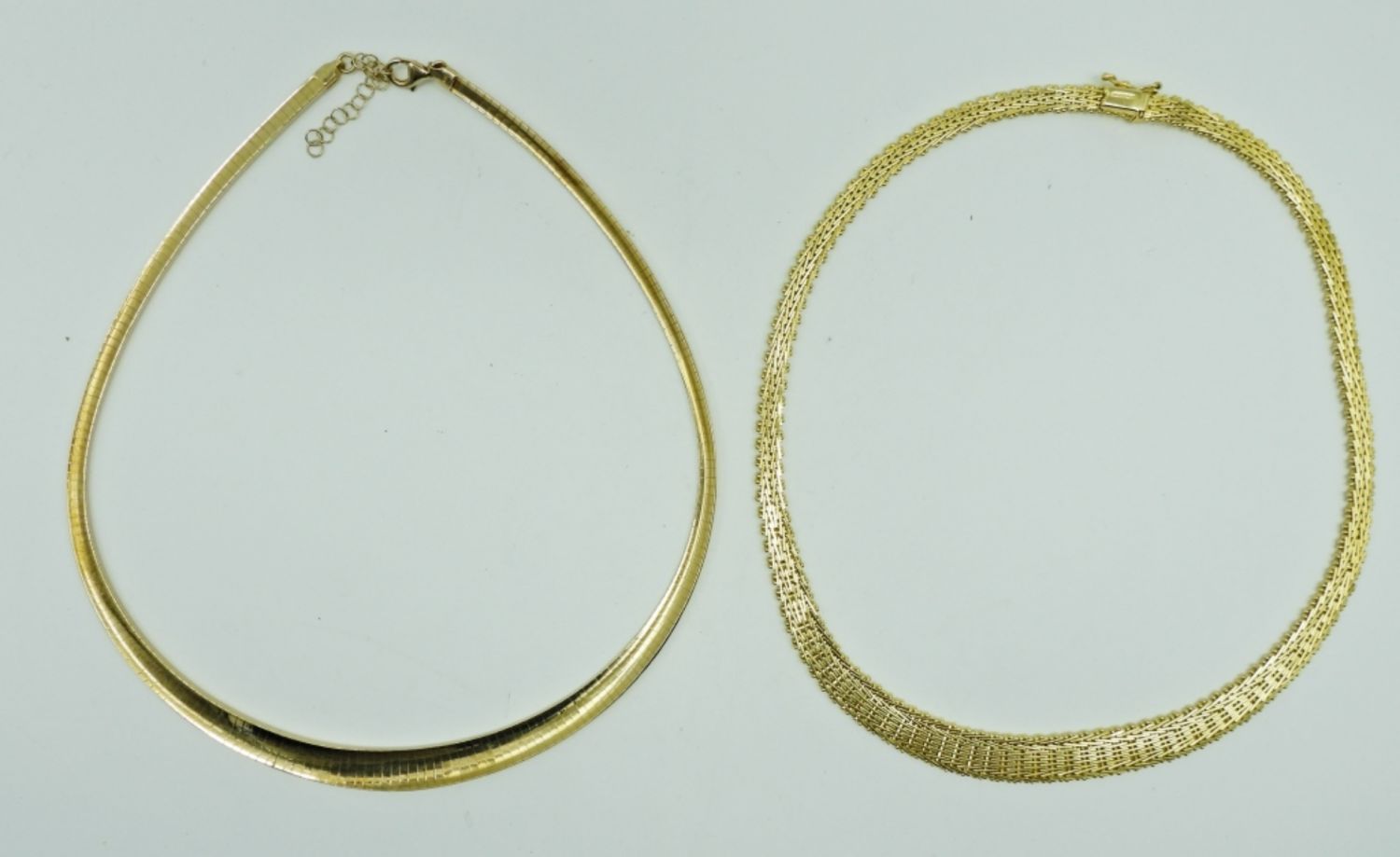 36DWT, BOTH NEAR 18″ LONG, 1 OMEGA STYLE W LOBSTER CLASP STAMPED 925 ITALY, 1 MESH STYLE WITH BOX CLASP STAMPED 925 ITALY