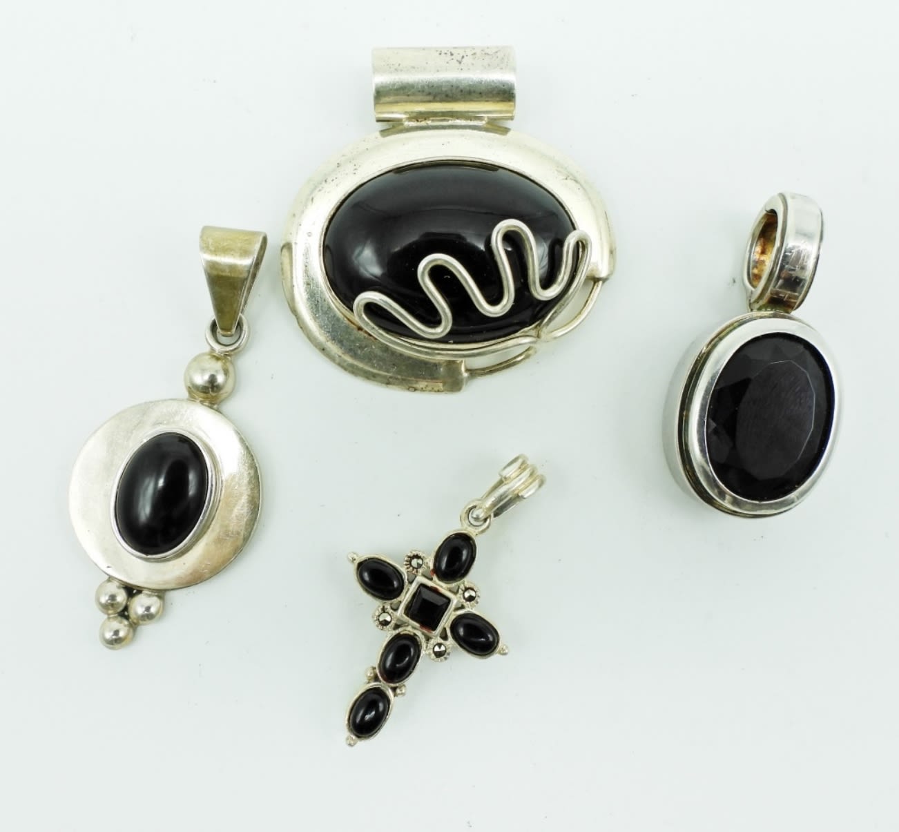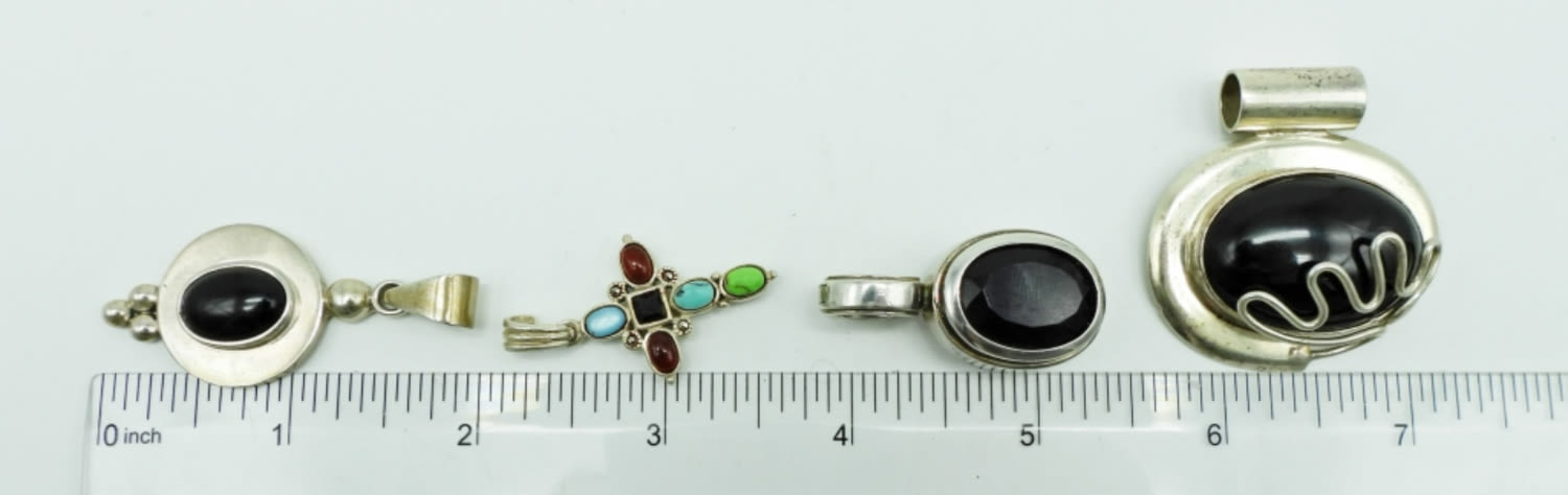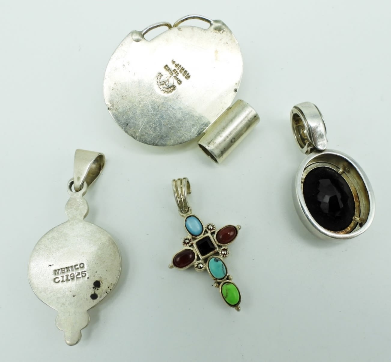 35DWT, BETWEEN 1 1/2-2″ IN LONG, STAMPED 925, THE CROSS HAS MULTI-COLOR STONES ALSO ON THE BACK STAMPED 925, 1 STAMPED MEXICO CII925