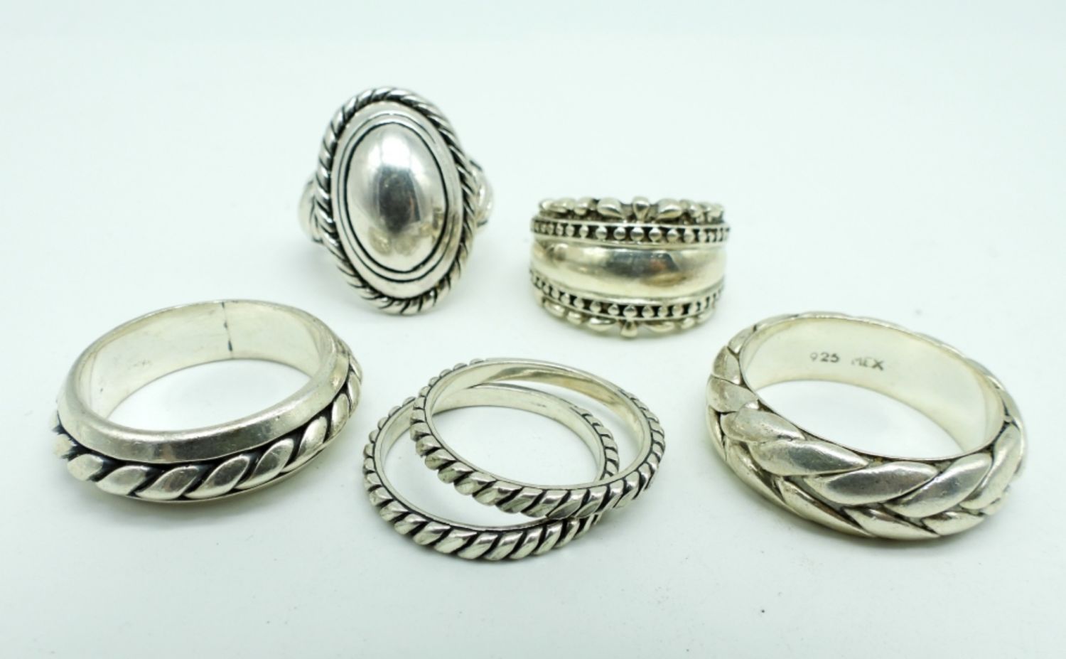 27DWT, SIZES: (4)- 8, (1)- 10, (1)- 11 ALL STAMPED 925 ON THE INSIDE, PREFECT TO LAYER