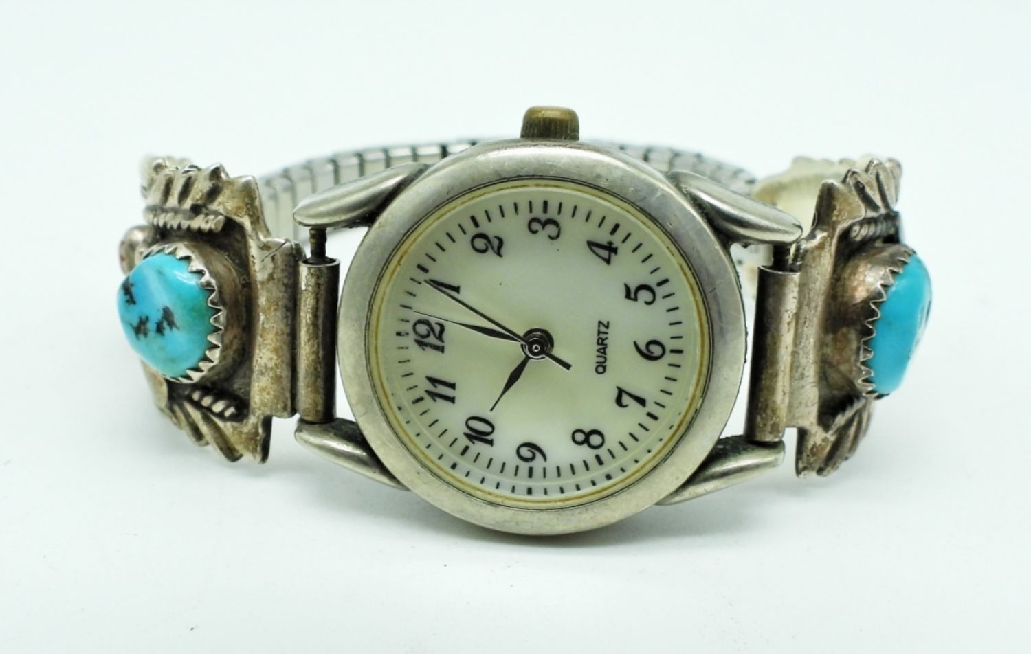 17.7DWT, NOT TESTED, QUARTZ WATCHFACE, WATCH BAND IS STRETCHY AND STAMPED STERLING ON THE INSIDE