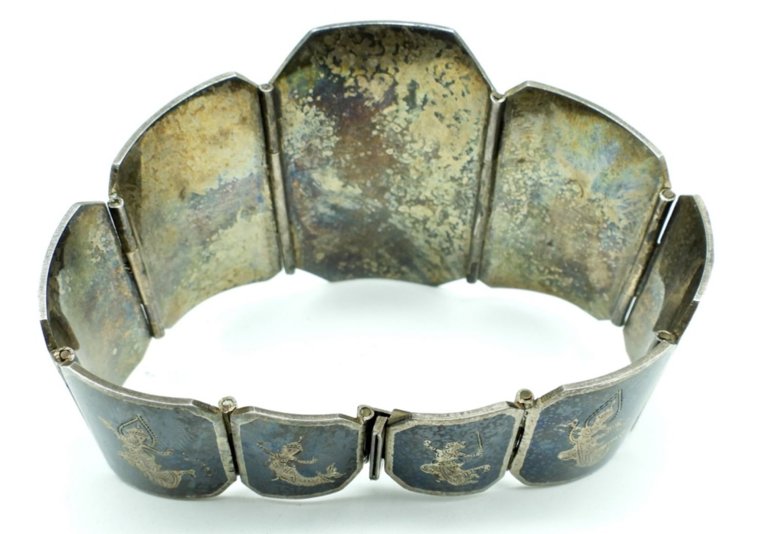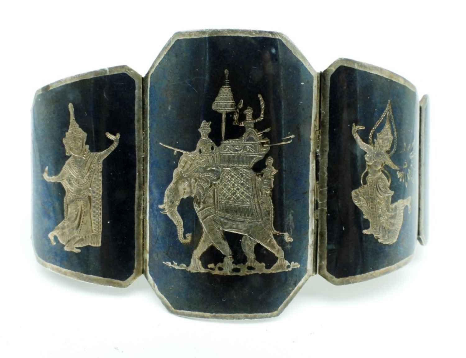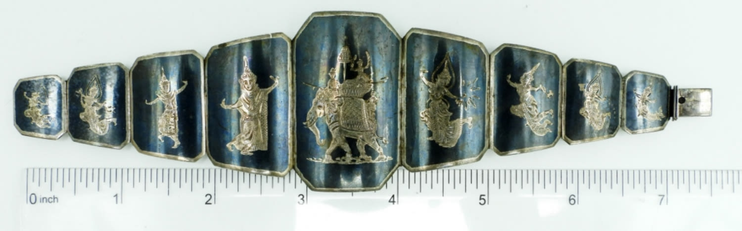 41.1DWT, WITH AN ELEPHANT IN THE MIDDLE, BOX CLASP, UNQUIE PIECE, 7 1/2″ LONG STAMPED STERLING MADE IN SIAM