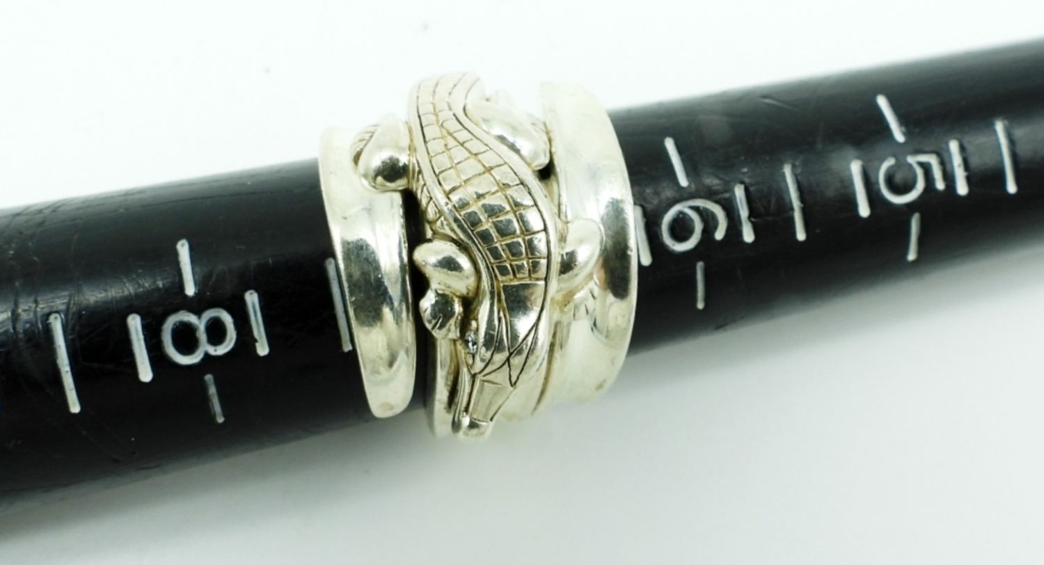 21.5DWT, 1- HORSE HEAD SIZE 9, STAMPED 925, 1- ALLIGATOR RING SIZE 7, STAMPED B. KIESELSTEIN CORD 2000 925 THAILAND