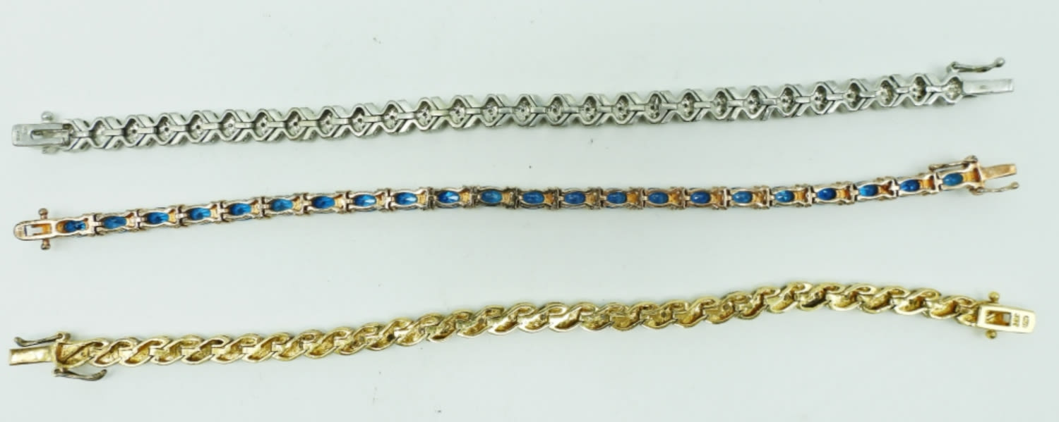 27.3DWT, 7 1/2″ LONG FOR ALL THREE, STAMPED 925 WITH BOX CLASPS