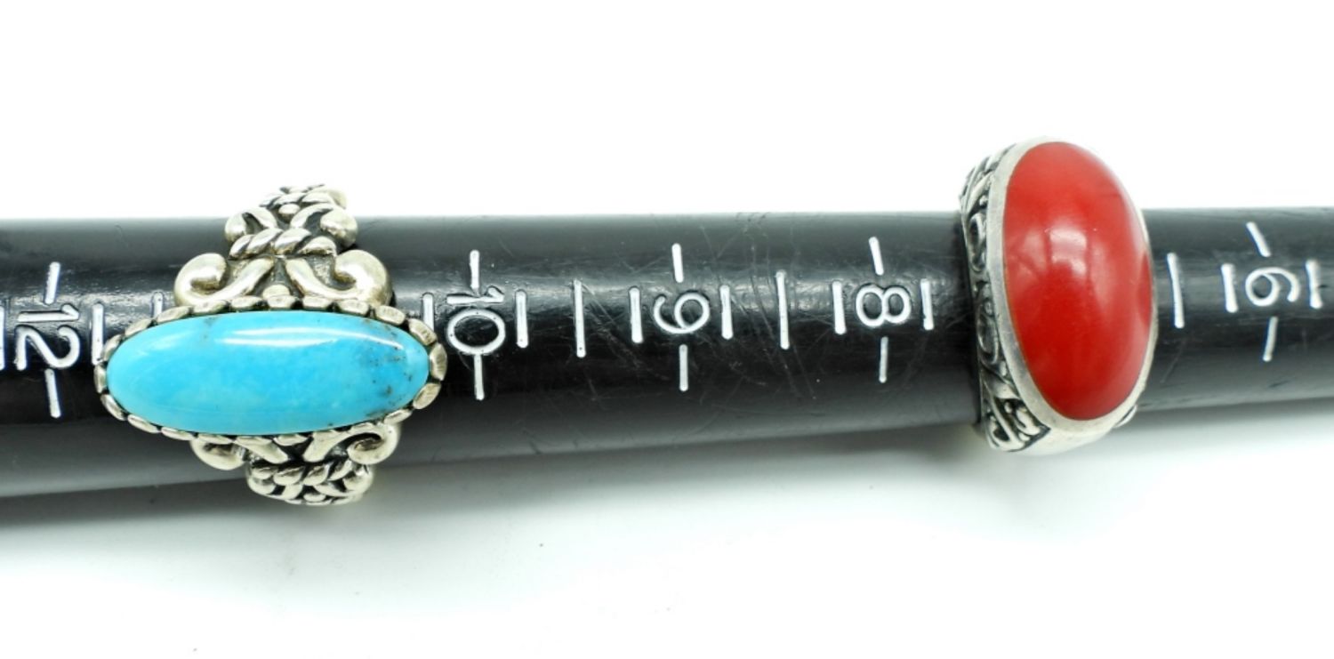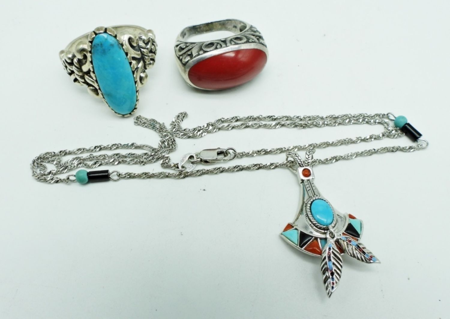 16.2DWT, 20″ LONG NECKLACE STAMPED 925 ON THE BACK, RING SIZES CORAL- 7, TURQUOISE- 11 BOTH STAMPED 925