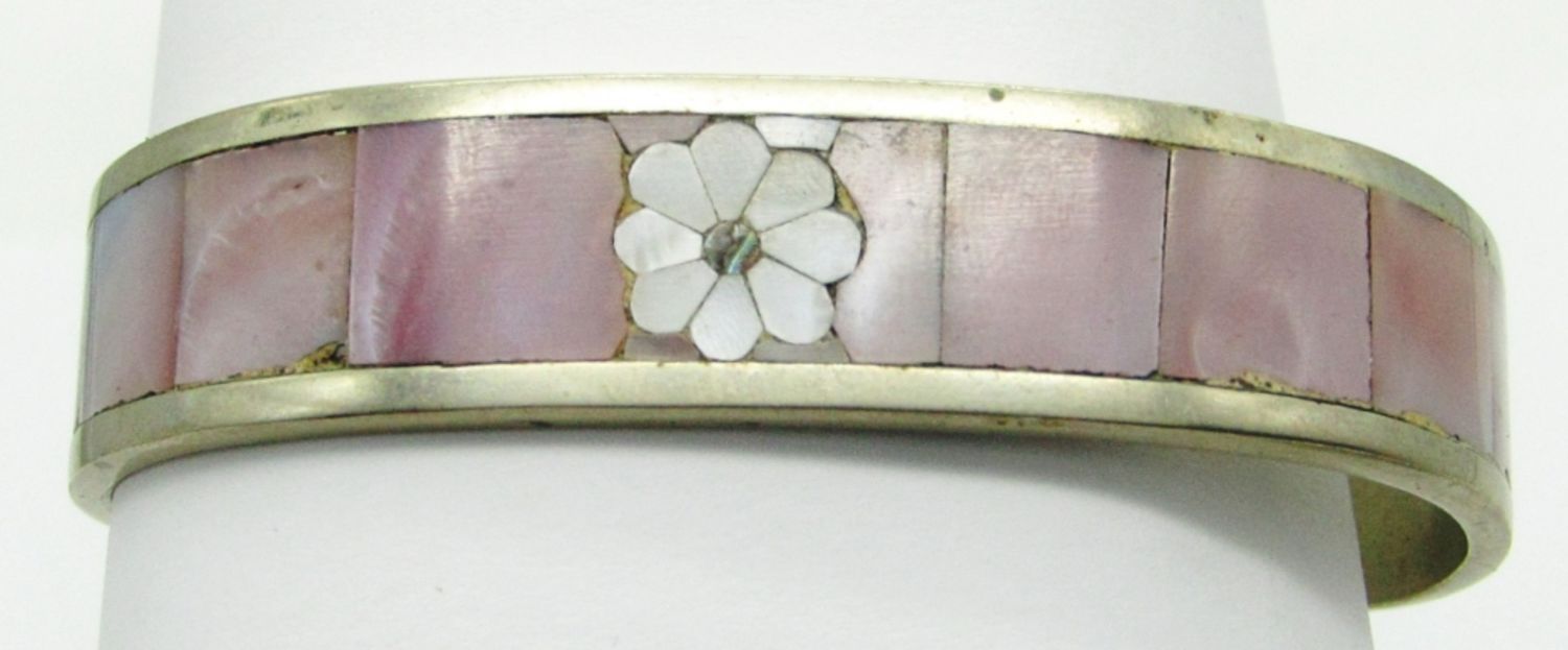Marked Hecho En Mexico, With Small White Flower Inlay; 13.1 dwt.