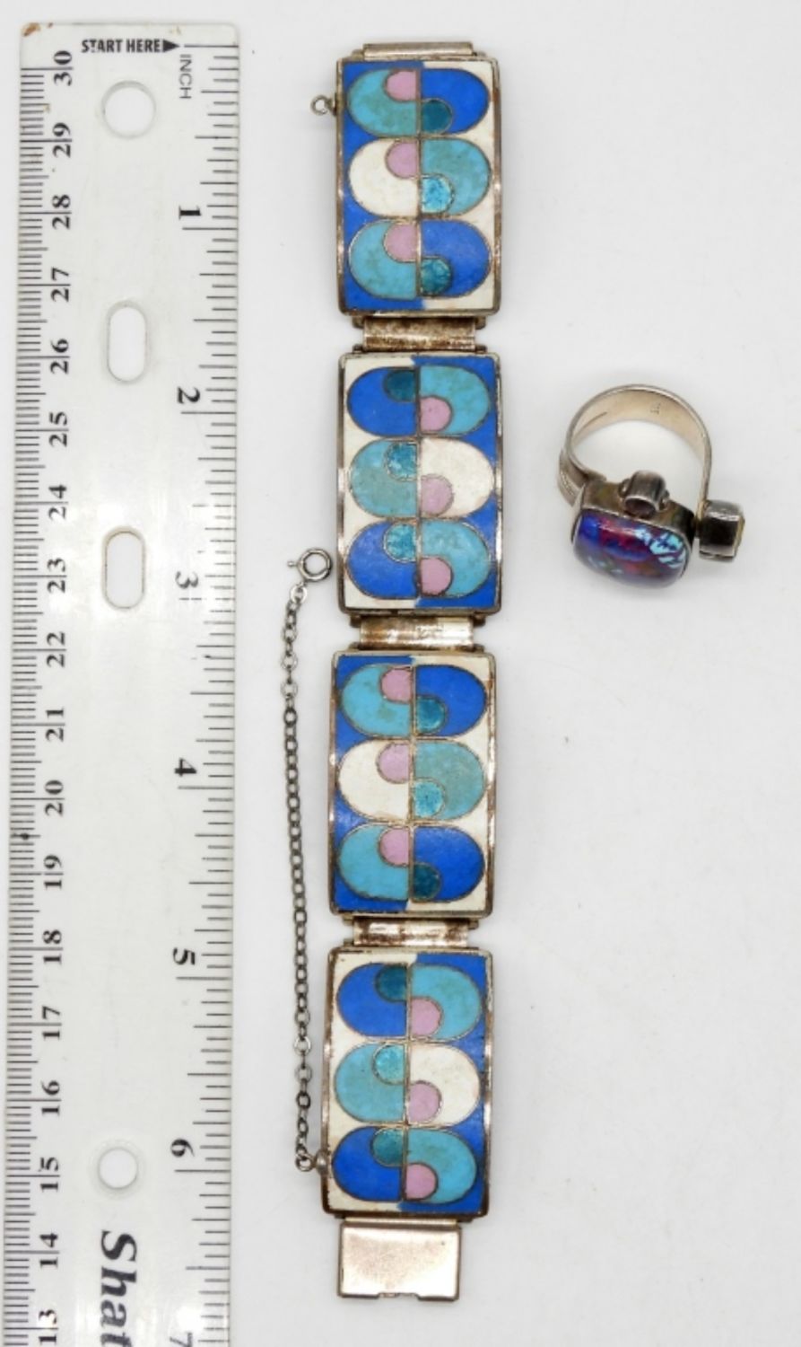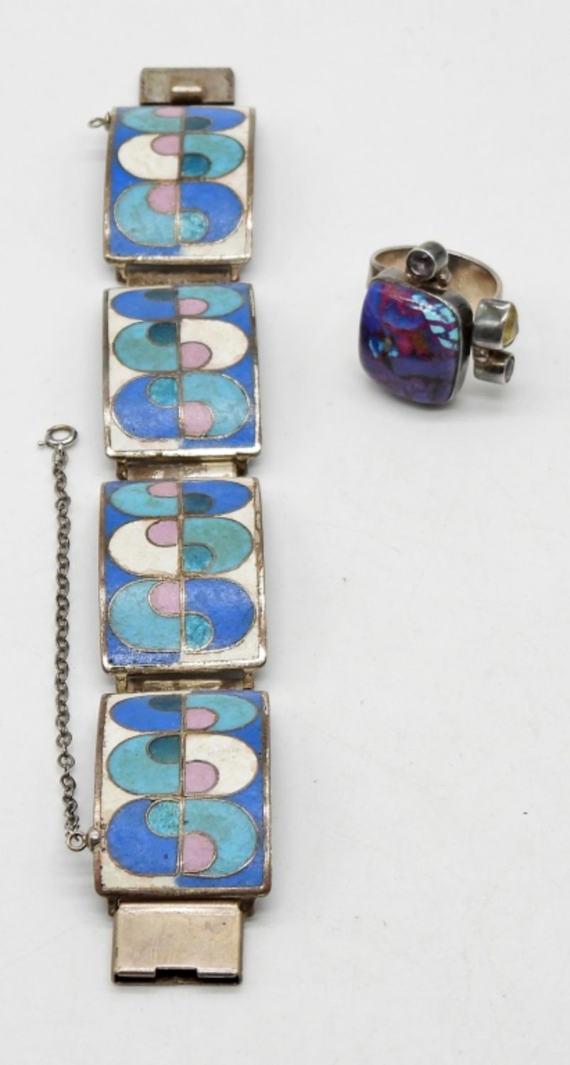 ADJUSTABLE BAND RING & NATURAL STONE INLAY BRACELET 7″ (38 dwt)