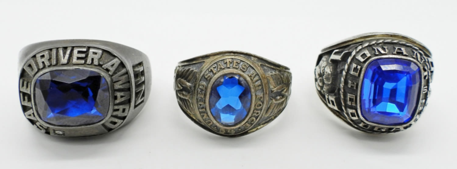 29DWT, 1- 1980 CONANT COUGARS, STAMPED ARGENTUS SIZE 10,1-UNITED STATES AIRFORCE 54, STAMPED STERLING SIZE 11 1/2, 1 SAFE DRIVE AWARD NEW YORK CITY SERVICES, STAMPED STERLING