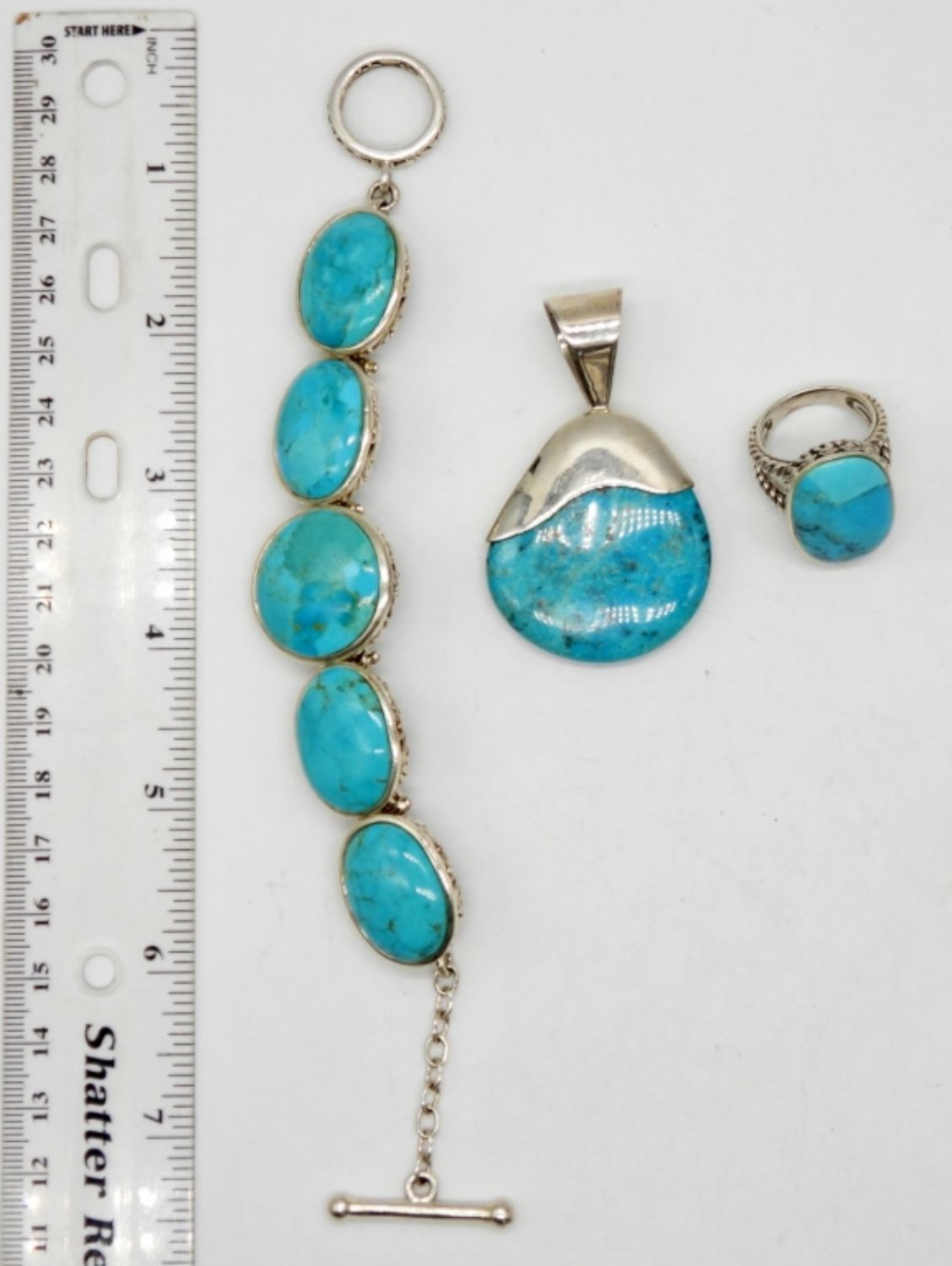 BRACELET 7″ LONG, RING size 7 & LARGE PENDANT – NICE CONDITION ((54 dwt)