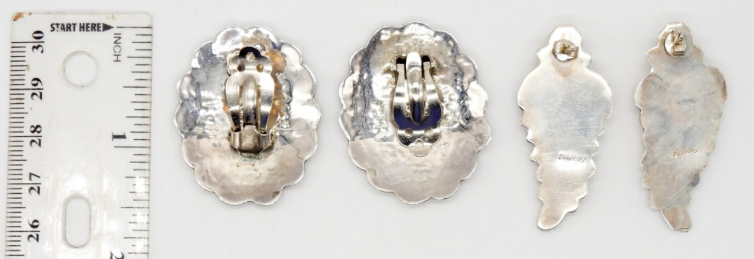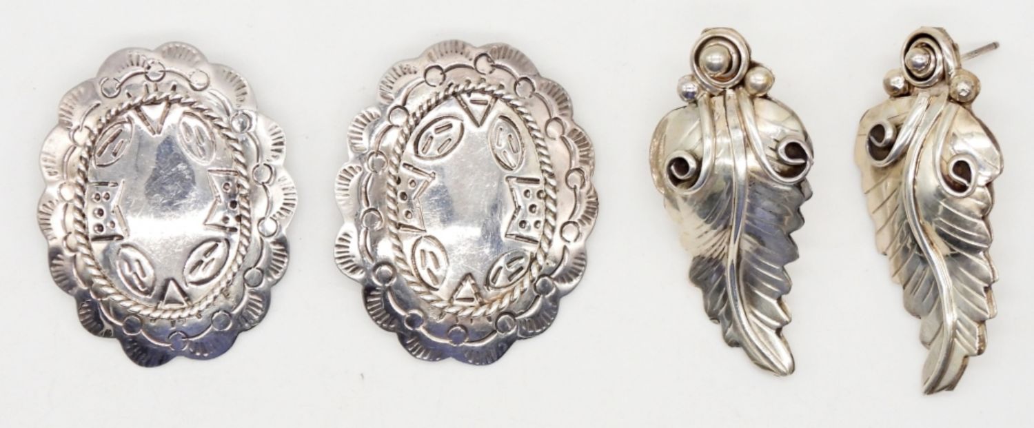 VINTAGE STERLING SILVER; (1) PAIR OF CLIP-ONS WITH ENGRAVED DESIGN – MARKED 925; (1) PAIR OF PIERCED EARRINGS WITH LEAF DESIGN – MARKED STERLING; 18.5 DWT