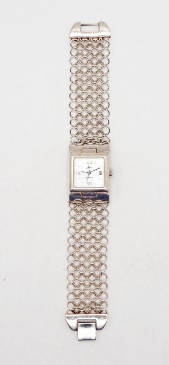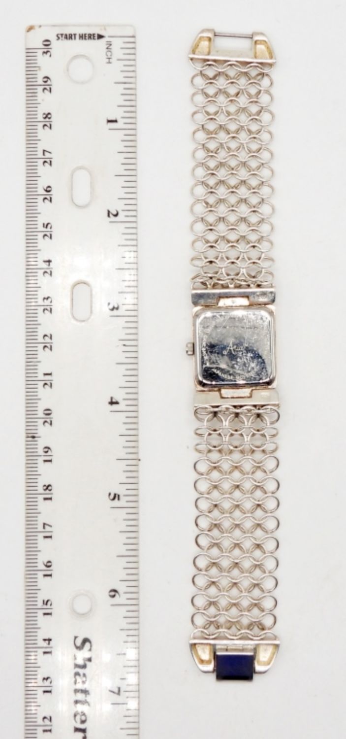 ARIA STERLING SILVER VINTAGE WRIST WATCH WITH STERLING SILVER CHAIN BAND – STAMPED 925 CHINA – 7″ LENGTH – 27.4 DWT