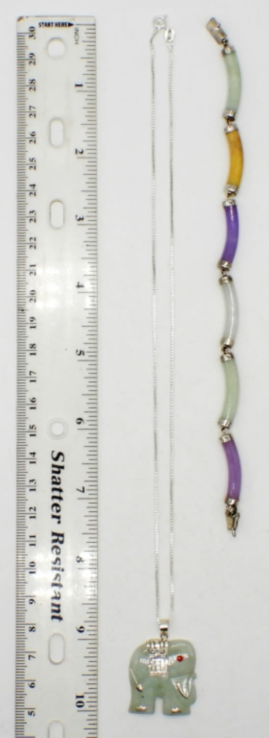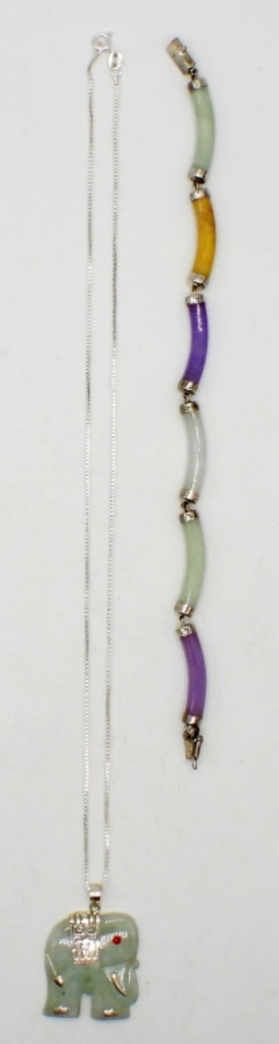 18″ STERLING NECKLACE w/JADEITE ELEPHANT PENDANT & 7″ JADEITE BRACELET w/STERLING (13 dwt)