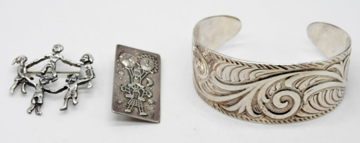 both CHILDREN at PLAY PENDANTS STAMPED but NOT ABLE TO IDENTIFY – CUFF 925 THAILAND STAMPED 7″ (41 dwt)