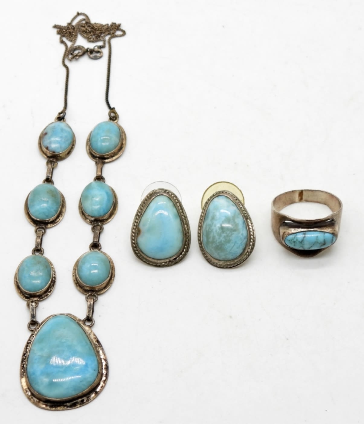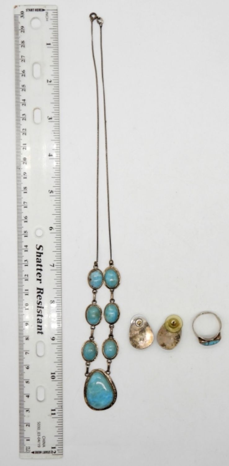 18″ NECKLACE, PIERCED EARRING, RING size 7 (19 dwt)
