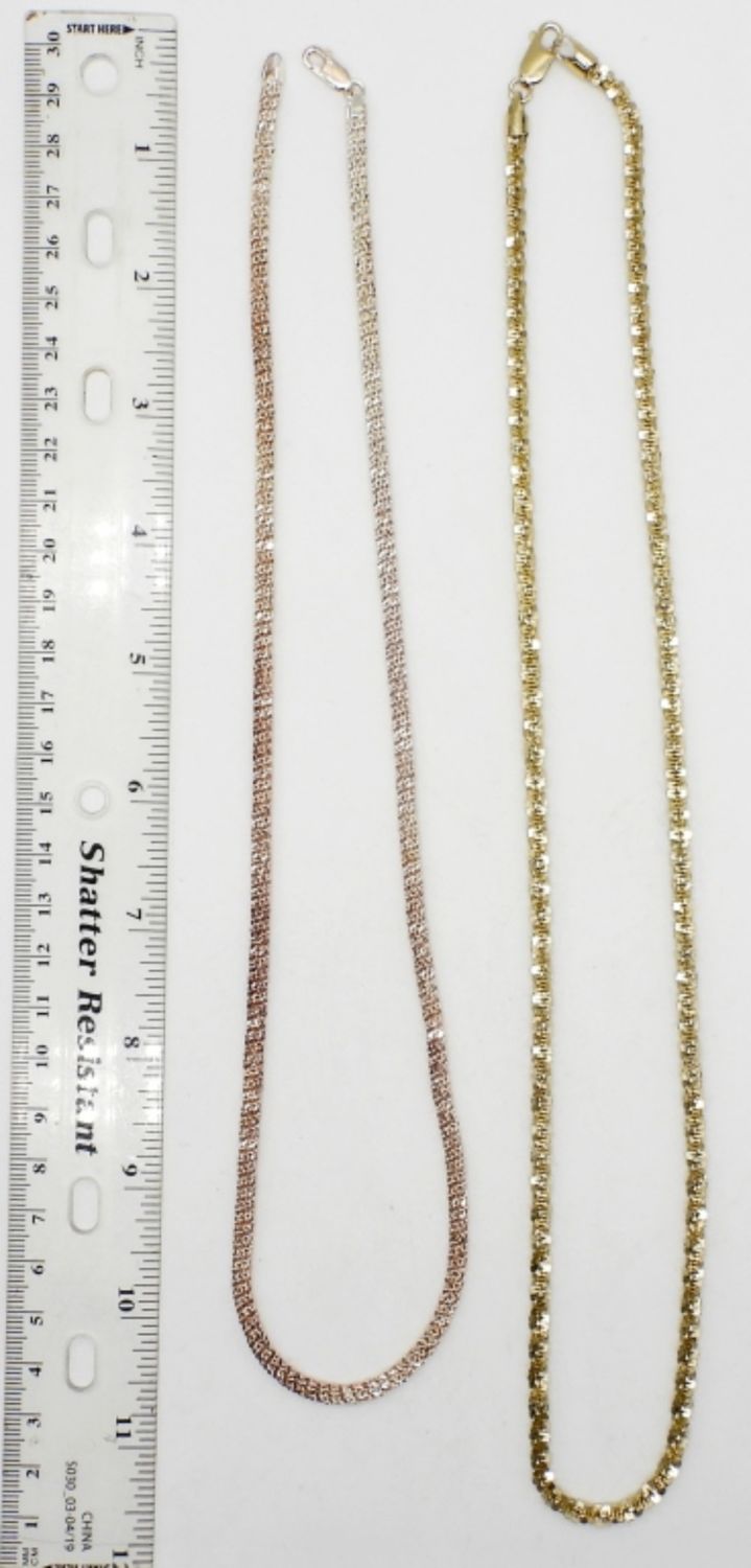 GOLD & COPPER TONE STERLING; 22″ & 24″ LENGTHS; BOTH MARKED 925 ITALY; (29.7 DWT)