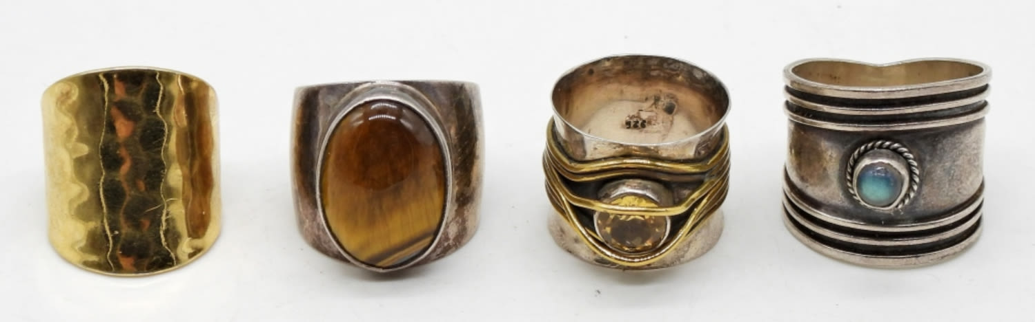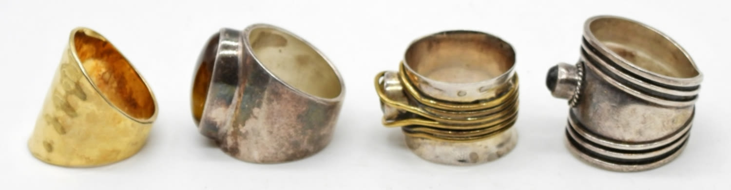 (4) WIDE BAND STERLING SOUTHWEST RINGS