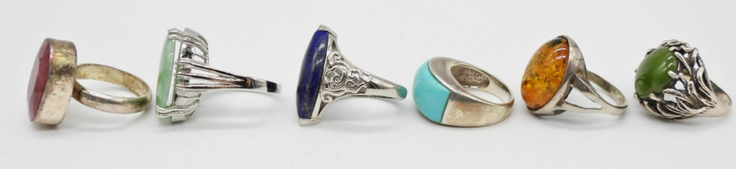 STERLING SILVER RINGS WITH LARGE NATURAL STONES & TURQUOISE; SIZES 6-9; MARKED TOTO TJC 925, STERLING, 925 (31 DWT)
