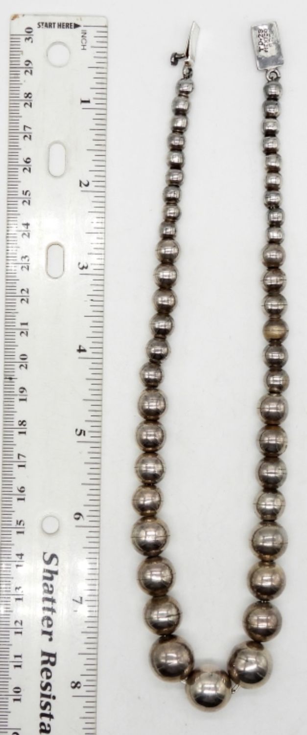 16″ NAVAJO STERLING PEARL BEADED NECKLACE – MARKED MEXICO 925 (38.5 DWT)