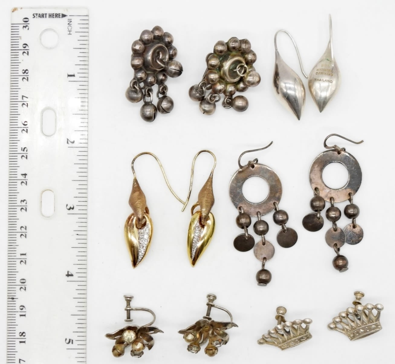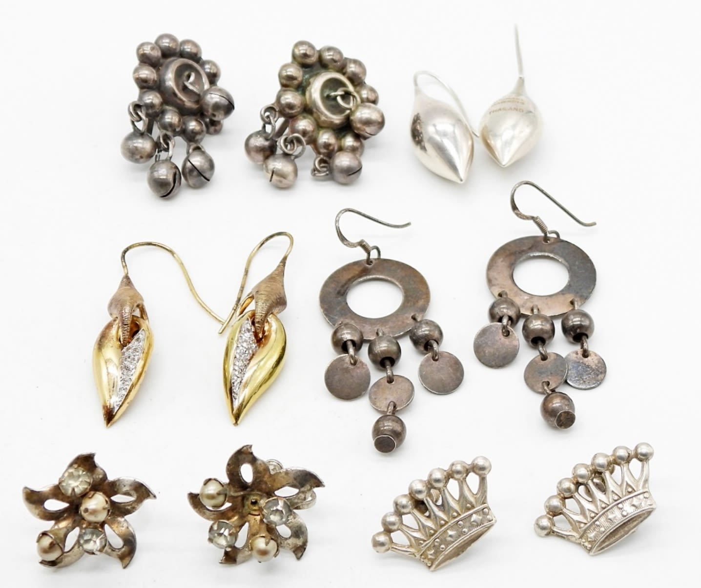 STERLING SILVER EARRINGS (3-PIERCED, 3-SCREW BACKS); MARKED MEXICO SILVER, 925 MICHAEL DAWKINS THAILAND; (33.2 DWT)