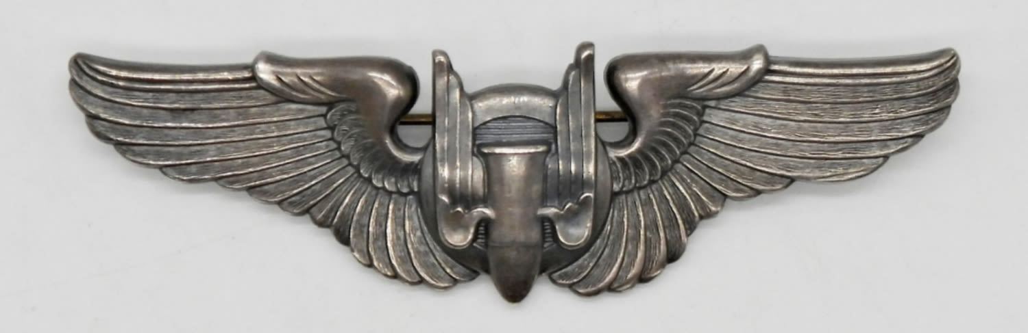 WWII US ARMY AIR CORPS AERIAL GUNNER WING PIN, STAMPED STERLING – 12 DWT