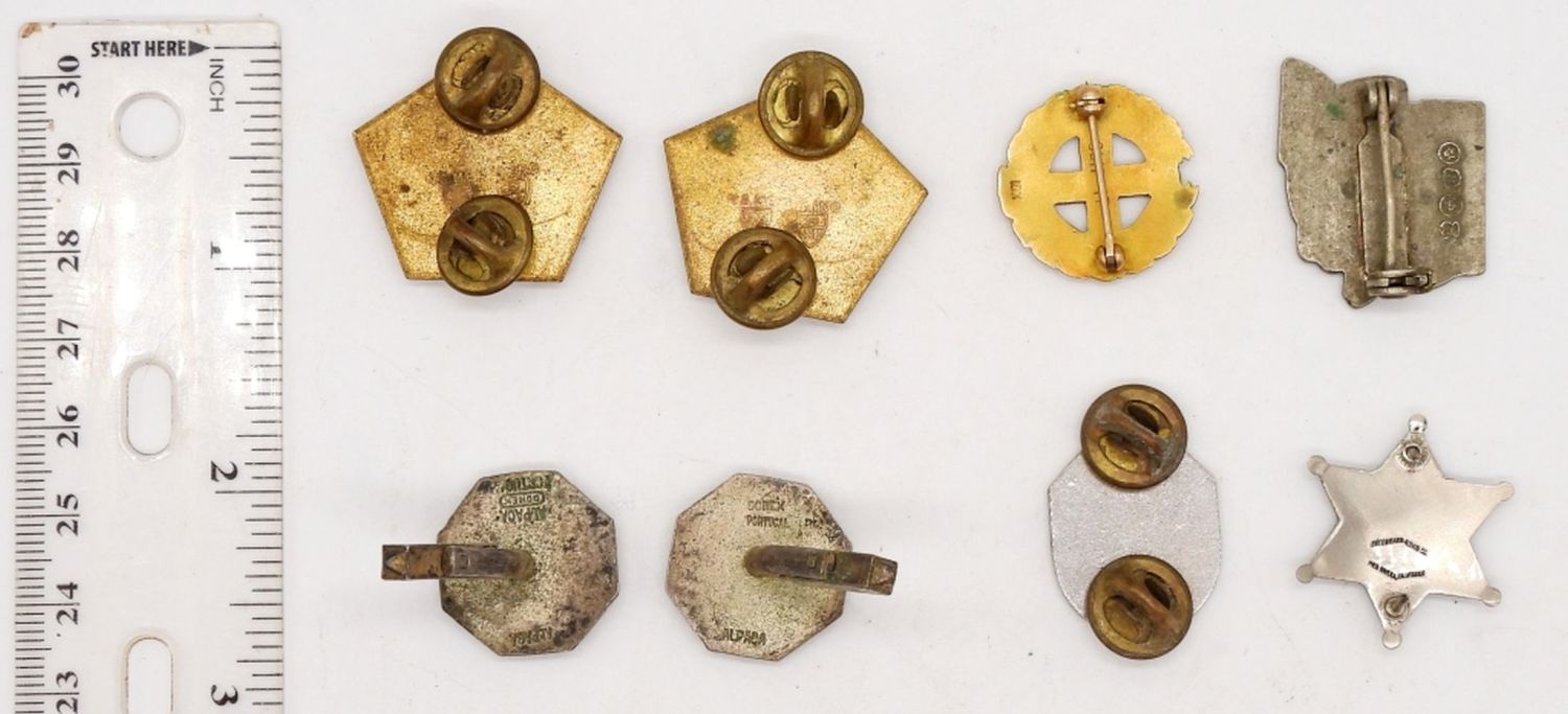 SHERIFF DEPT SHARPSHOOTER, TEAMSTERS 413, NURSING PIN, PORTUGAL CUFF LINKS, FOREIGN MILITARY PINS & MORE