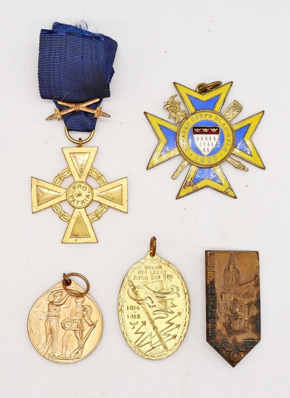 1929 HUSAREN CORPS BLAU-GELB, FURG DAGERCAND, (2) GERMAN PIN / PENDANT, PRO PATRIA
