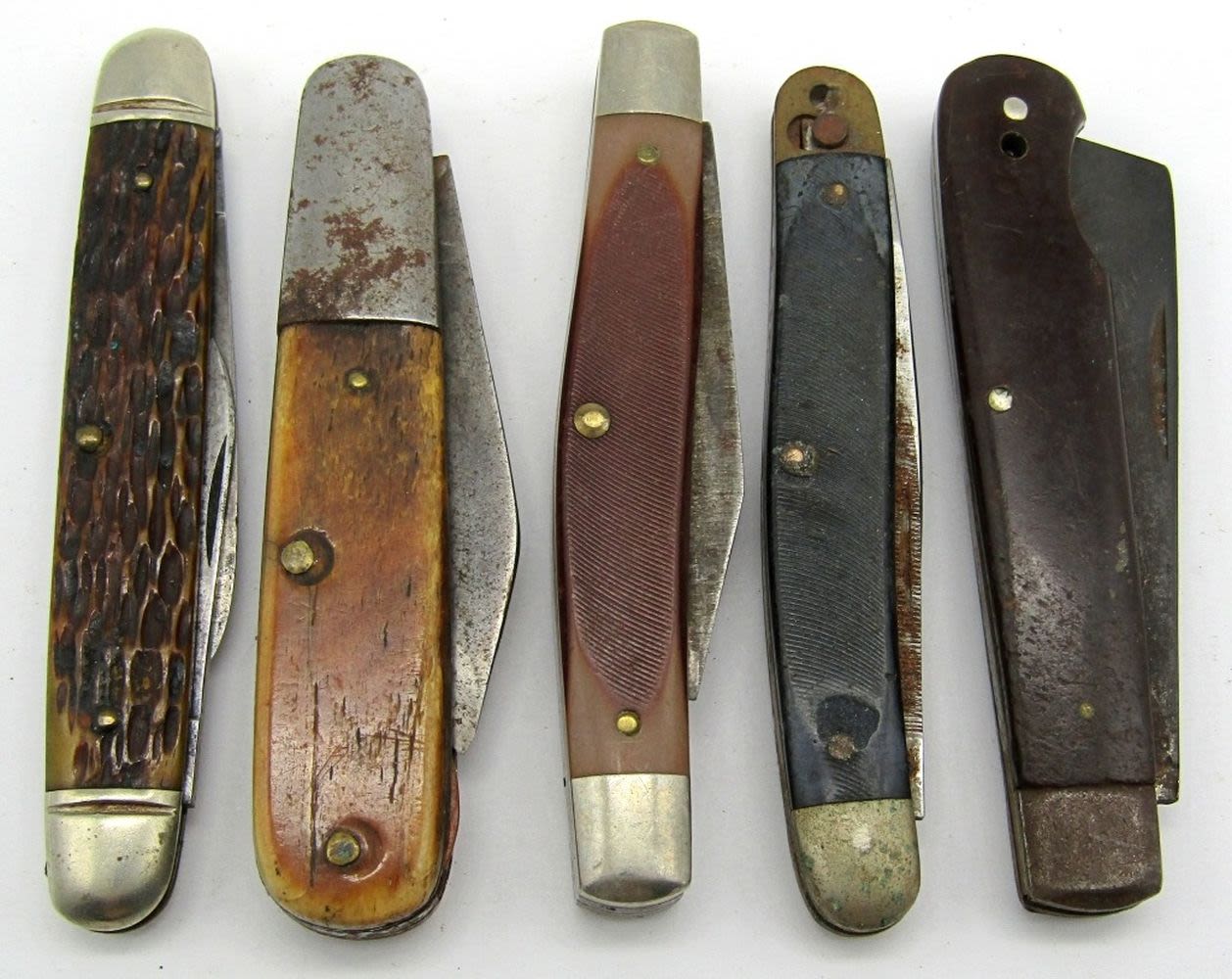 2-Blade Cattaraugus 2159, 2-Blade Old Timer Schrade USA 33OT, Single Blade Mklein & Sons Chicago, 2-Blade Robeson Shuredge 622253, 2-Blade Craftsman USA 95023; Used Conditions.