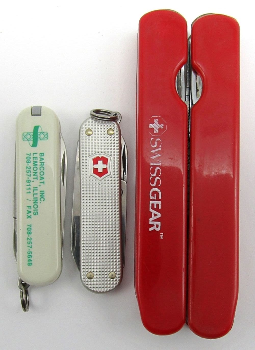 Victorinox Switzerland Keychain New In Box Pocket Multi-Tool/Knives, Swiss Gear Plier Multi-Tool in Leather Holder; New & Used Conditions.