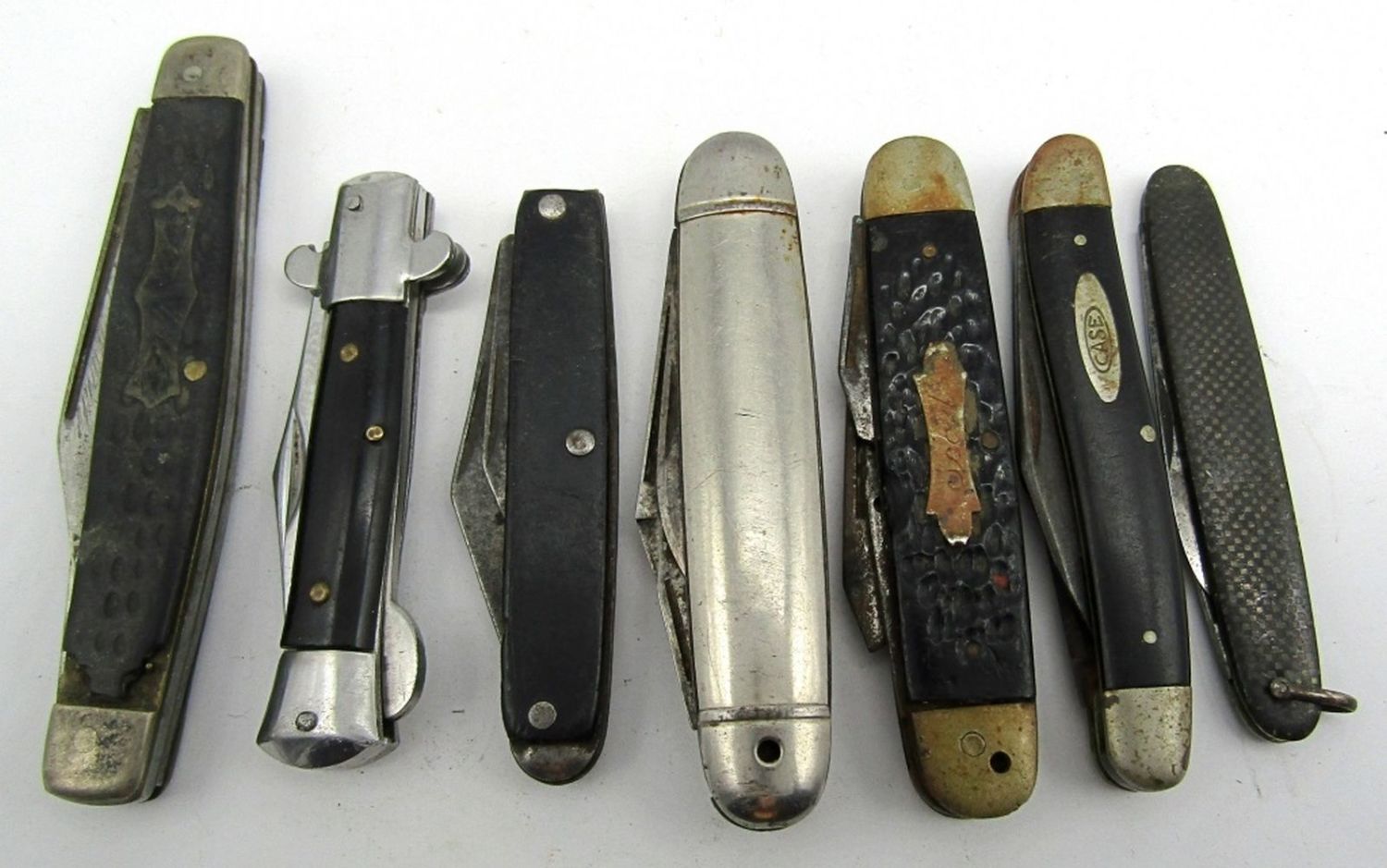3-Blade USA, 3-Blade/Tool Imperial, 2-Blade The Ideal, 2-Blade Unmarked, Single Blade A-3-77 Stainless Japan, 3-Blade CaseXX, 3-Blade Hammer Brand USA; Used Conditions.