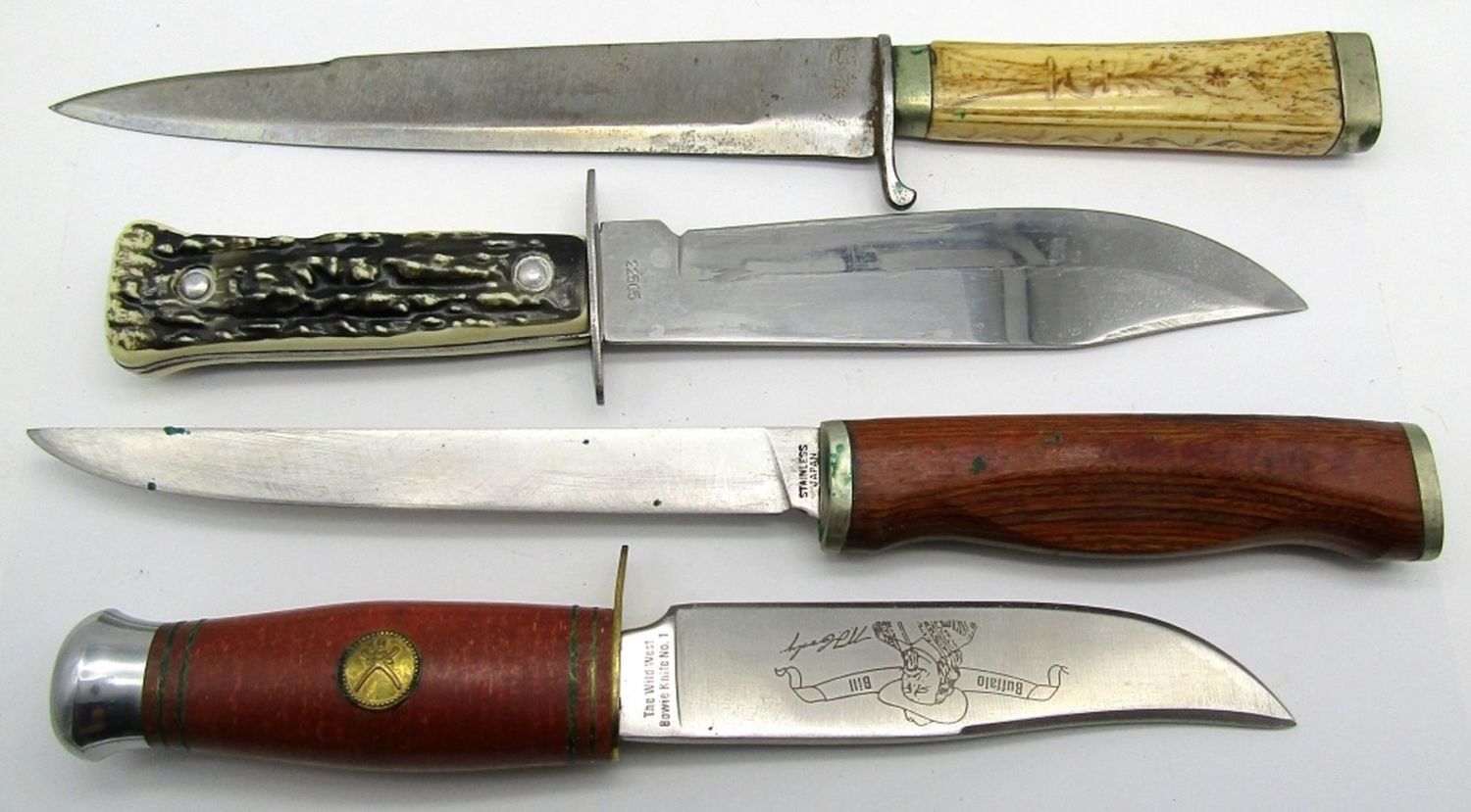 Buffalo Bill The Wild West Bowie Knife No. 1, Edge Mark Brazil Stainless 22505, Custom Crafted Sharp Japan Fixed Blade Knife, Vintage Unmarked Bowie Knife; Used Conditions.