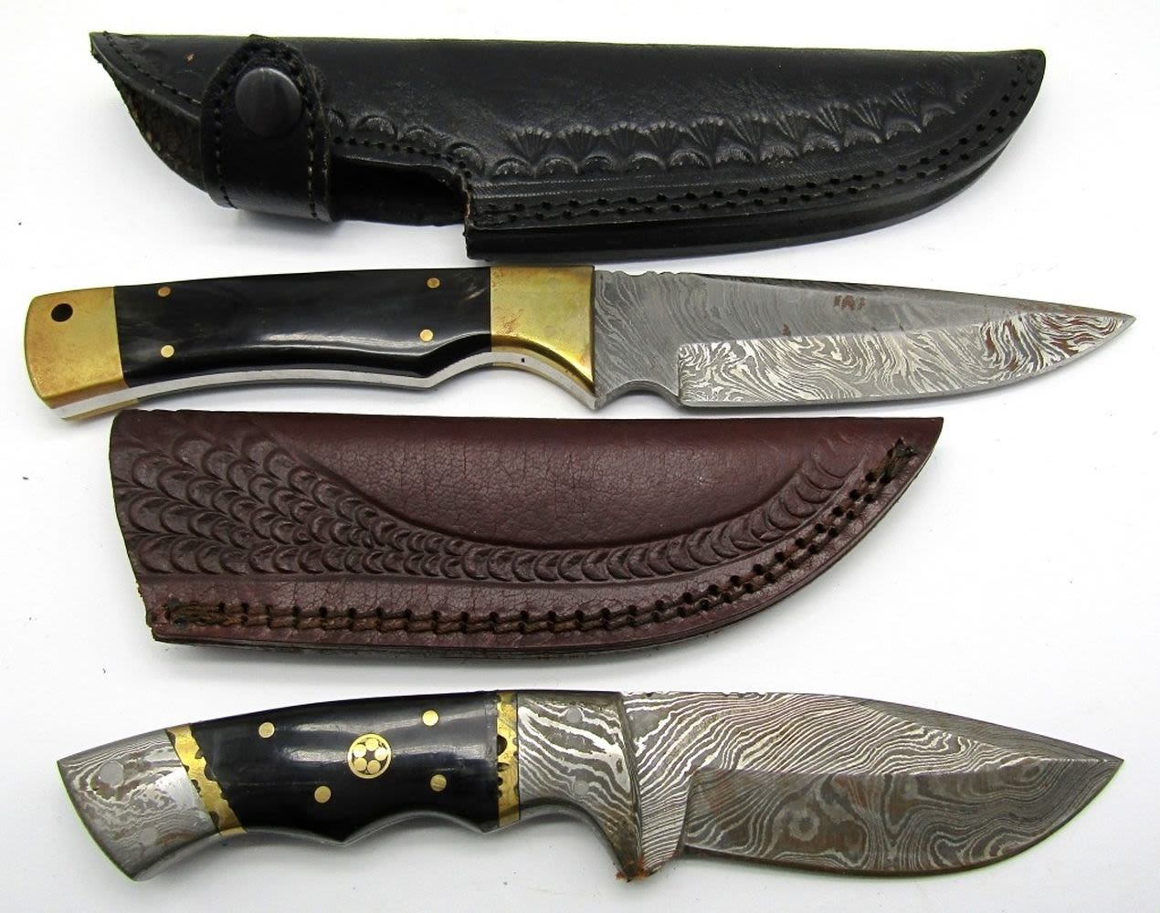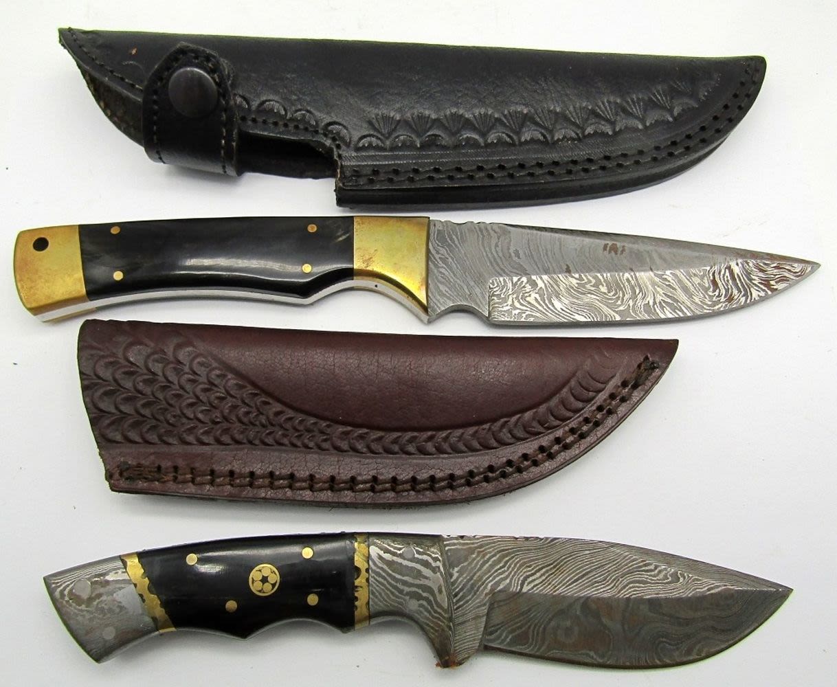 Fixed Blade Hunting Knives With Leather Sheaths; Used Conditions.
