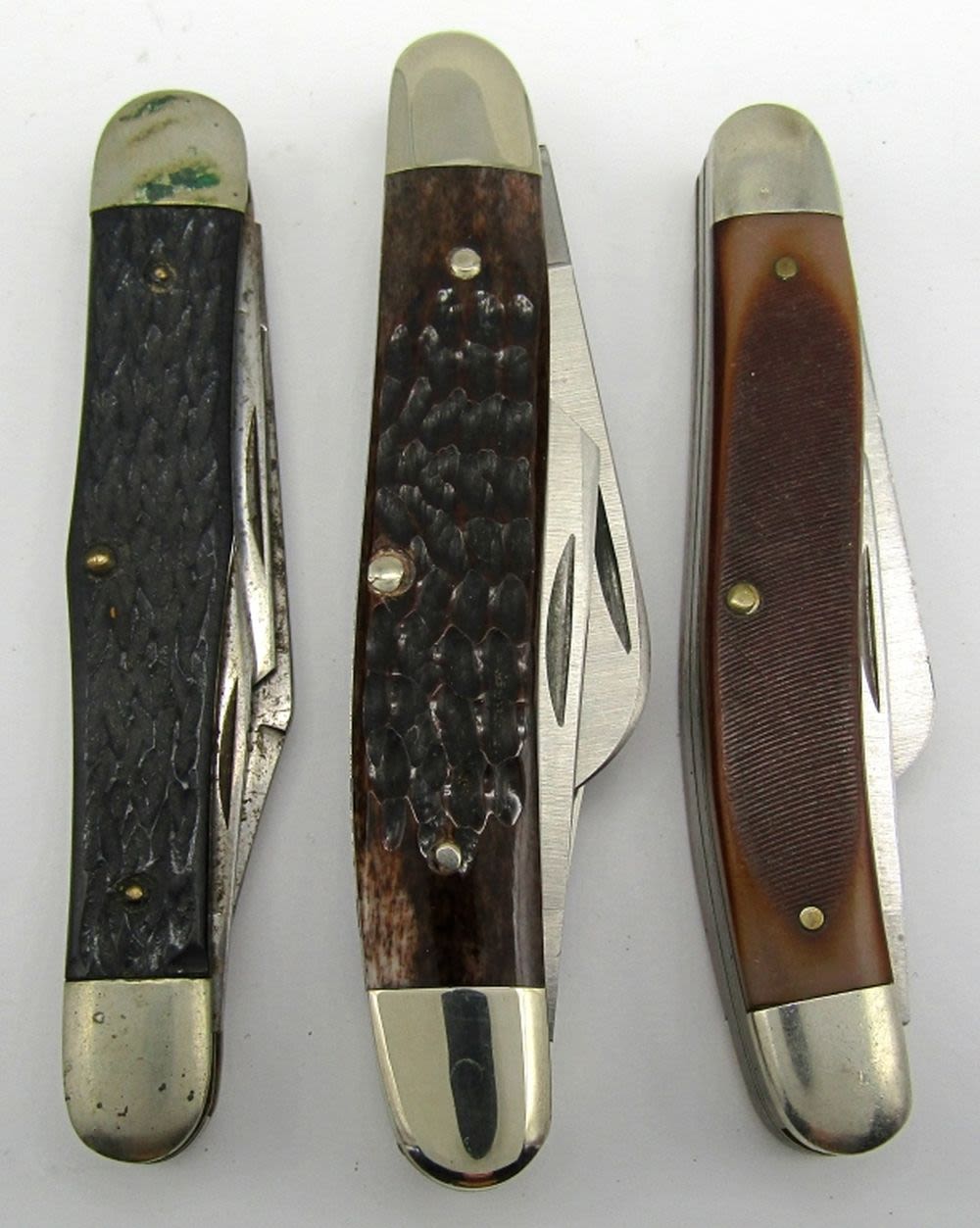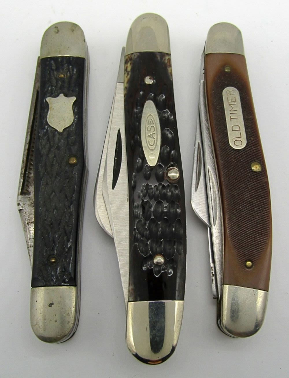 3-Blade Camillus New York USA 72, 3-Blade CaseXX Stainless USA 2-Dot 6347 HP SSP Tested XX Razor Edge, 3-Blade Old Timer Schrade USA 98OT; Like New/Used Conditions.