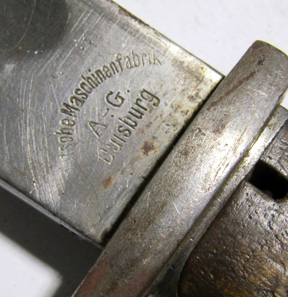 Marked “A-G Duisburg Deutsche Maschinenfabrik” with Markings on the Hilt; 14.5″ Blade, 20.5″ Overall; Used Condition.