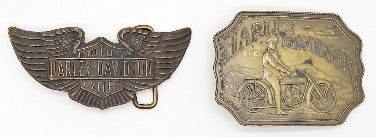 HARLEY DAVIDSON MOTORCYCLES PEWTER BRASS BELT BUCKLES BY LEWIS BUCKLES CHICAGO