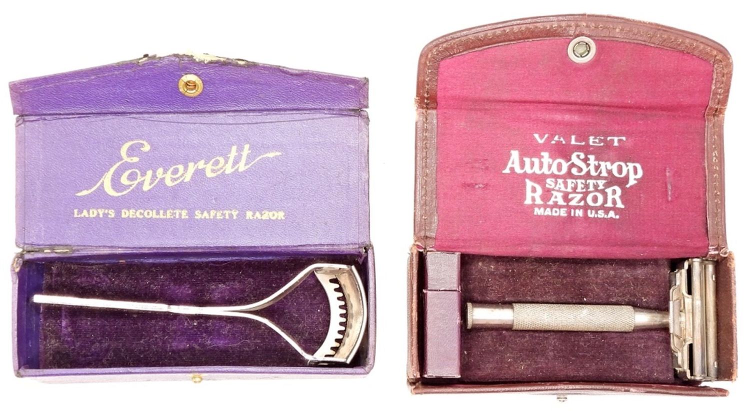 IN ORIGINAL BOXES – VALET AUTO-STROP SAFETY RAZOR MADE IN U.S.A.; EVERETT LADY’S DECOLLETE SAFETY RAZOR