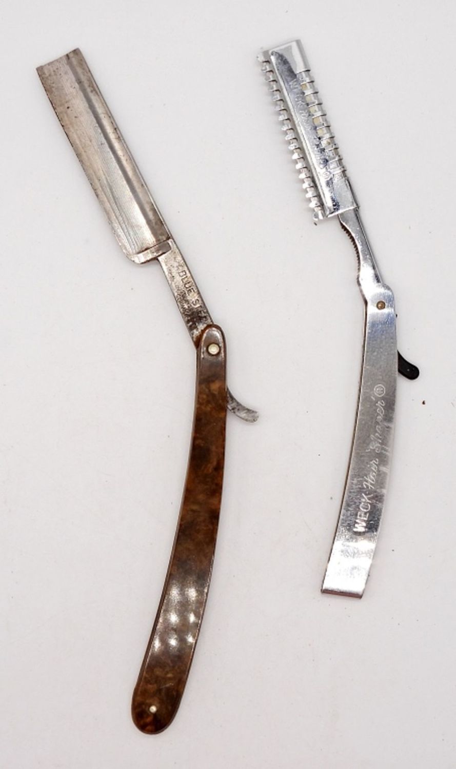 IN ORIGINAL BOXES – WECK HAIR SHAPER – OBM A. KASTOR & BROS GERMANY HAND FORGED; BLUE STEEL – ADORATION GIESEN & FORSTHOFF SOLINGEN GERMANY 295 5/16
